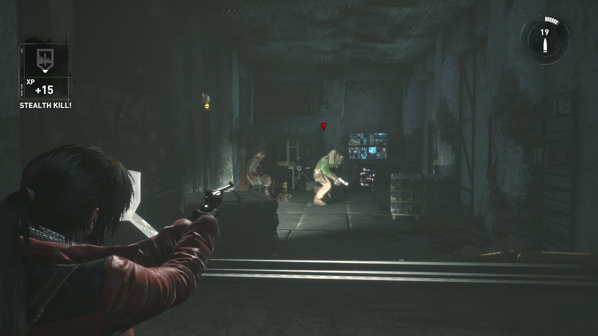 Take, for example, the Soviet Installation Hub area that appears within the game's first two hour of play - a level we were permitted to capture that follows on from the E3 and Gamescom demo areas. Here Lara broaches a military base nestled between mountains, terrain dotted with conifer trees, and covered with snow and ice. The demo kicks off with us perched atop a rocky precipice, where the engine gives us a great overview of the landscape with little pop-in as we zip-line down.