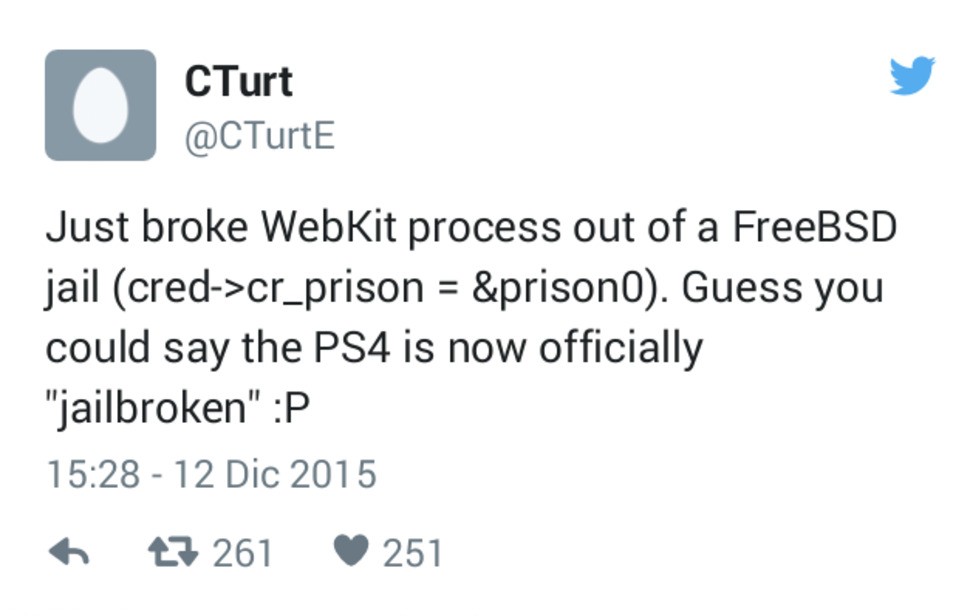 CTurt commented that "you could say that PS4 is now officially Jailbroken", producing a torrent of Twitter requests for piracy, but the truth is that the short-term damage offered by this exploit is minimal. It seems that the exploit was carried out on a PlayStation 4 running the ancient firmware 1.76, and it was patched out of existence with the 2.0 system software update. Right now, the PS4 runs with version 3.11 software.