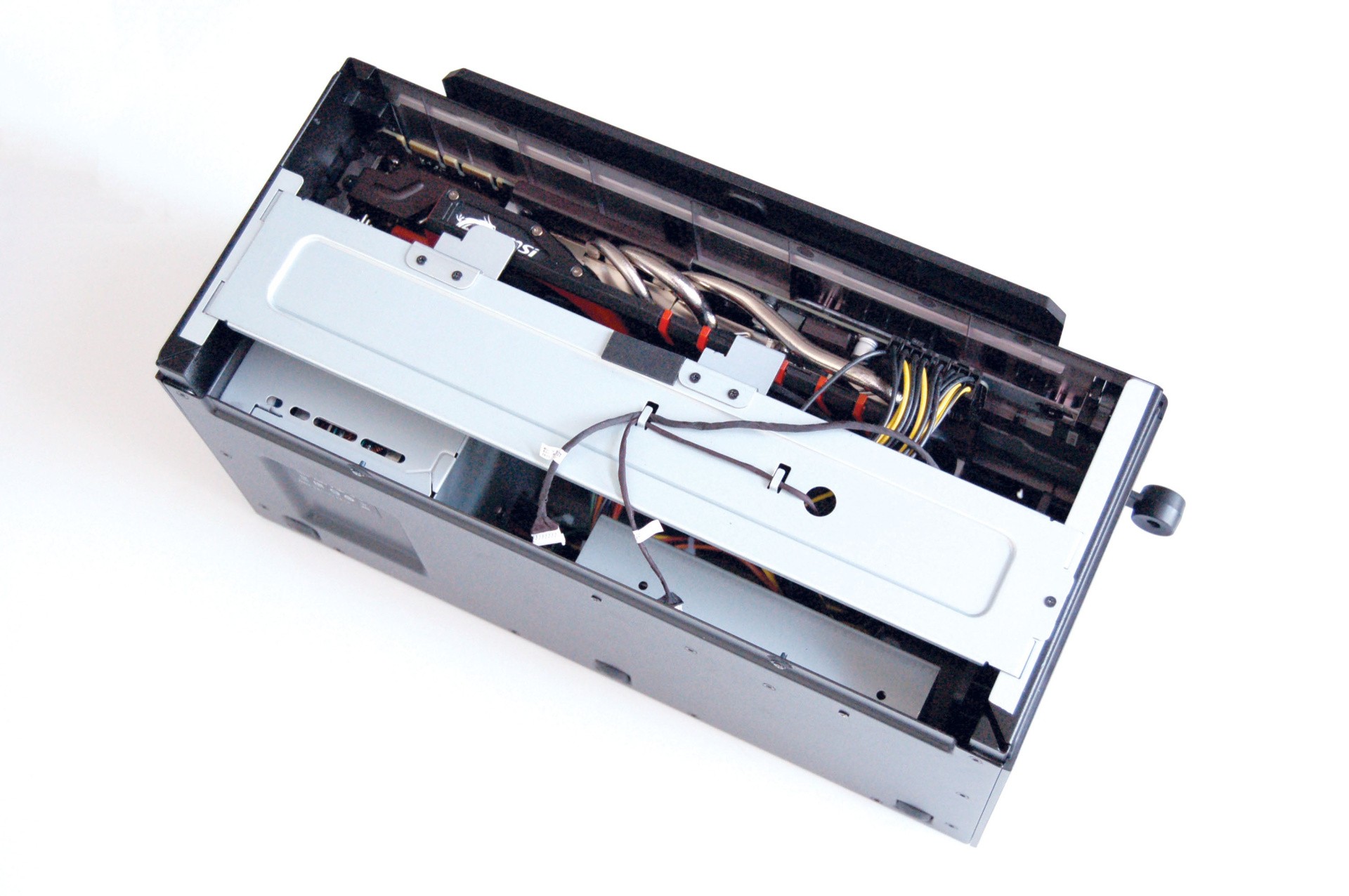When the processor's under load, the noise can be quite overwhelming - it's not so much the loudness, but the pitch that is the issue. But the question is whether MSI can effectively cool a monster processor like this in such a small chassis. We used Intel's extreme tuning tool for stress-testing, finding that the processor did momentarily hit the max 3.7GHz turbo before rapidly hitting thermal limits, throttling down to its rated 2.8GHz within the minute. And there it stayed - albeit at recorded temperatures of 90 degrees Celsius.