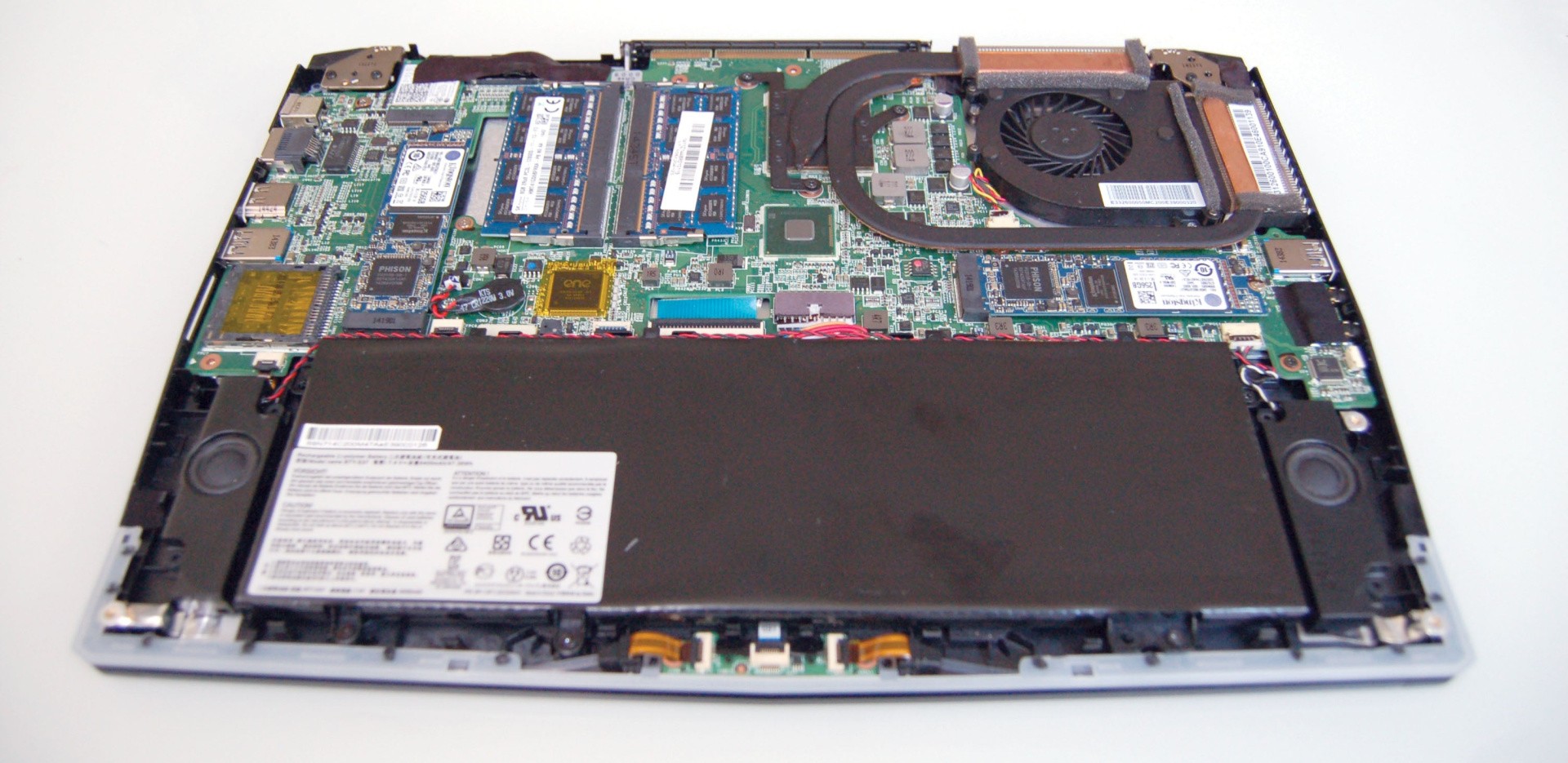 Praise be for user-upgradability! The bottom of the GS30 is easily removable and from here you can upgrade RAM and the dual M.2 SSDs.
