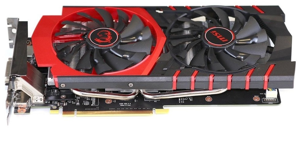 While the GTX 950 may lose some of the power of its more expensive stablemate, its feature-set remains intact. GM206 is potentially a superb GPU for a media centre, featuring full h.264 and HEVC encode/decode and support for HDMI 2.0 and HDCP 2.2 on its HDMI port. It also retains a wealth of outputs - there are three DisplayPorts on the MSI model and DVI too. The GTX 960's power efficiency sees TDP drop to just 90W, with extra juice supplied via a single six-pin power input on the top of the card. GM206's overclocking prowess is undiminished too - this accounts for the highly generous factory overclock MSI has added here, and just like the GTX 960, we could improve performance still further with further tweaking, hitting 1500MHz on the boost clock with ease, the GPU remaining cool at just 62 degrees Celsius on an open test bed. Bearing in mind the card's 95 degree thermal limit, cards with less capable coolers installed in tight cases should still be able to achieve very close to that level of peak performance.