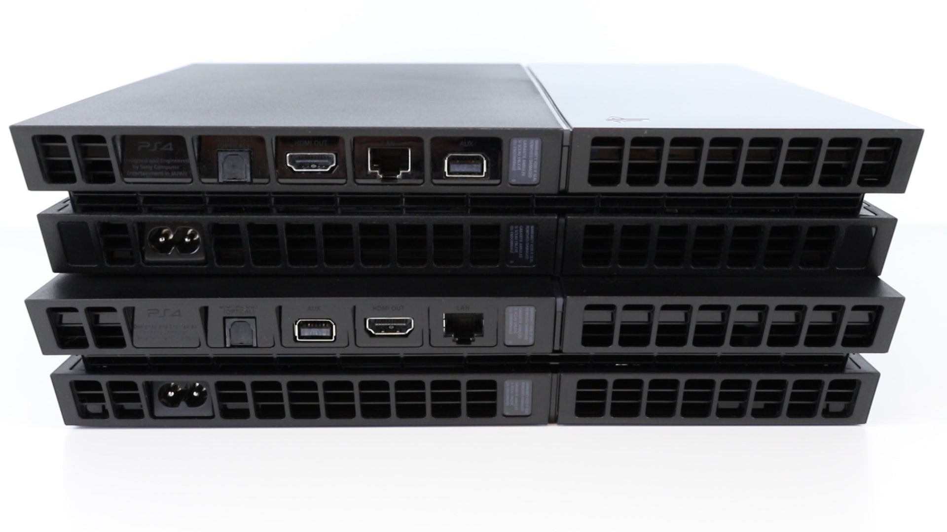 Otherwise, the new PS4 is in many ways similar to the old. Placed side-by-side, the dimensions are matched to the millimeter (barring the new buttons), while internally, shots reveal the same sized APU at the motherboard's centre - a likewise 28nm chip. The only other tweak is to the PS4's port layout around the back; the HDMI, auxiliary and Ethernet ports all switched around at no real consequence.