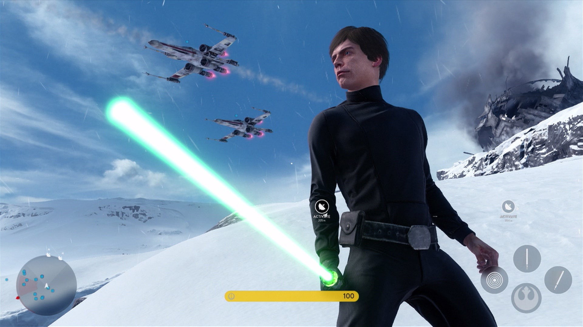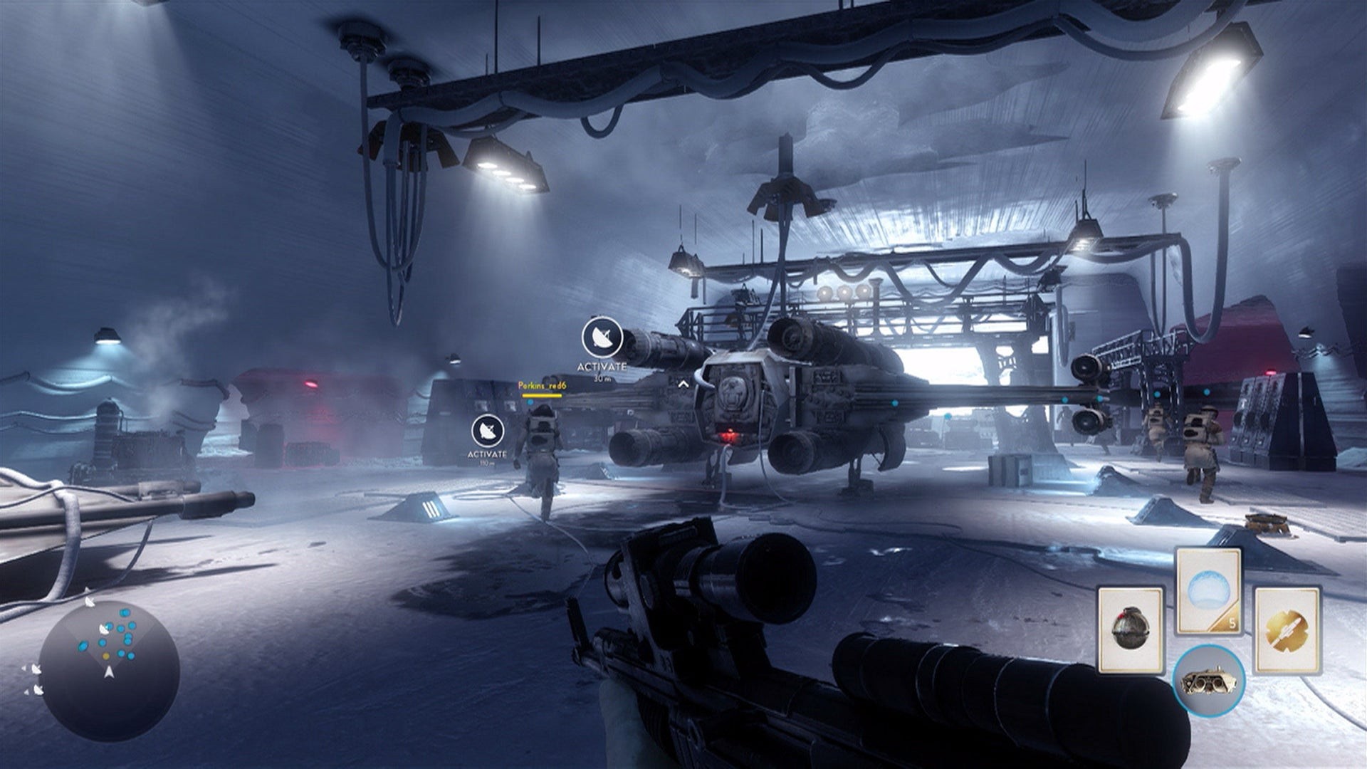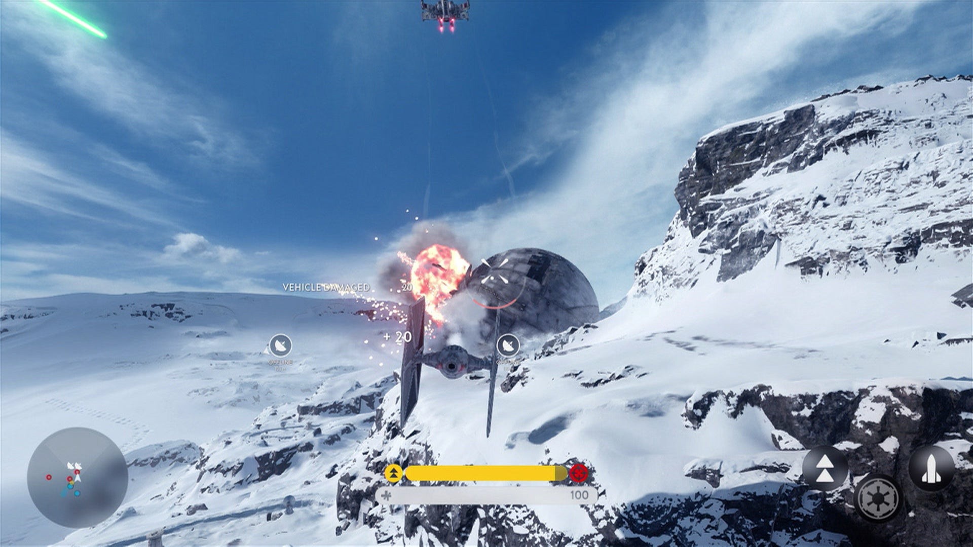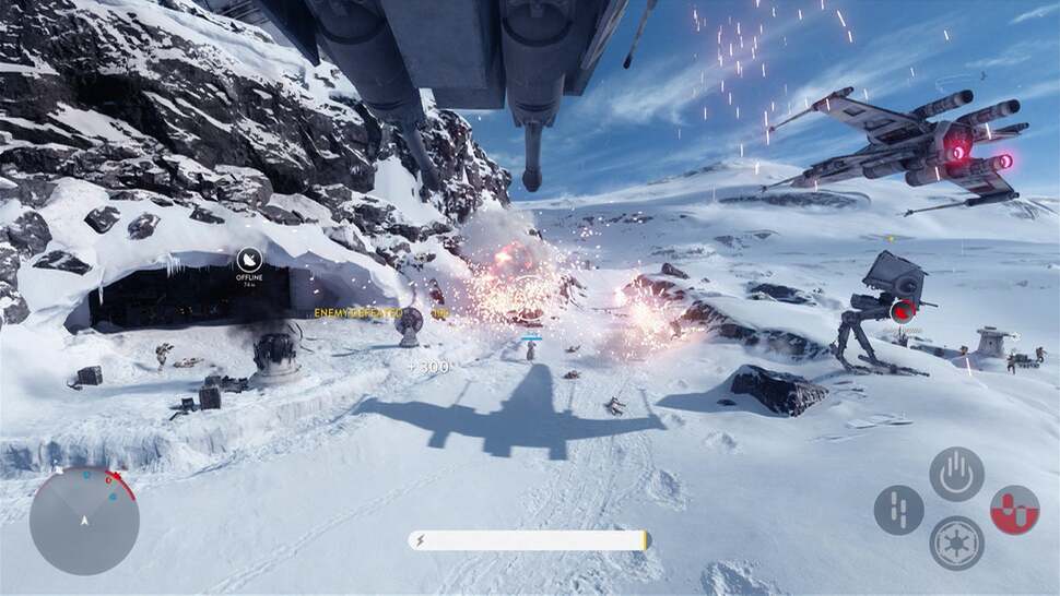 The E3 demo's presentation is far less cinematic as a result, but the sense of scale is still very much there. Though the Hoth map is nowhere near as densely packed as Endor's woodland, draw distances are vast with only minimal geometry pop-in when swooping down in an X-Wing. Up-close, character model detail is also close to the teaser's high standards. The only let-down is a sighting of a filtering cascade: when flying past other airborne vehicles, shadows far below appear blurred until it descends past a certain threshold. Otherwise, the game's approach to shadows quality and ambient occlusion is every bit as strong as the Battlefield series' appearances on console.