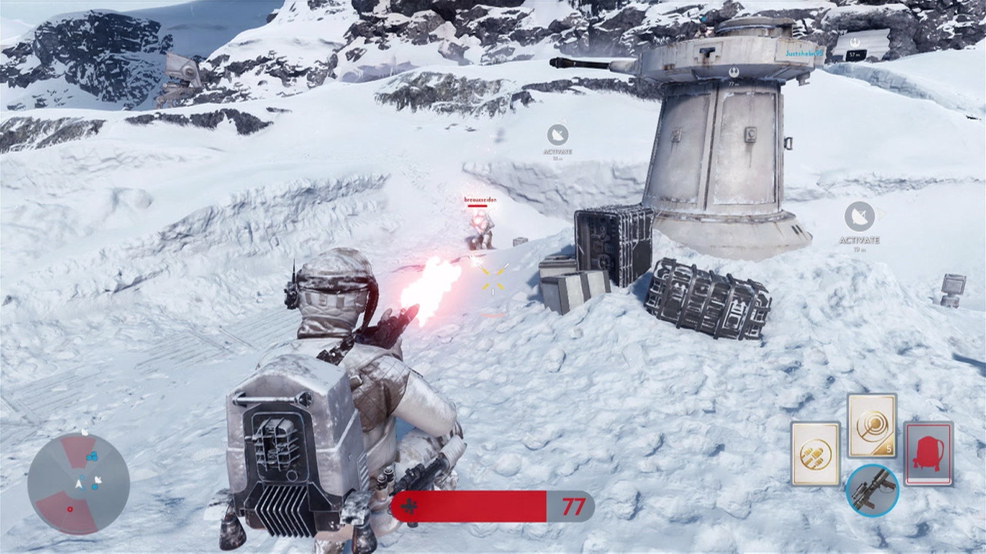 First and foremost, the E3 Walker Assault footage is a genuine, practical look at console gameplay in motion. The PS4 capture is largely unedited, providing long stretches of action around the icy Hoth map, and letting us in on frame-rate and resolution details ahead of launch. Right away, from an early pixel-count we see the game matches the basic framebuffer setup of Battlefield 4 and Hardline: the evidence suggesting this PS4 build runs at a native 1600x900 with a pass of post-process anti-aliasing.
