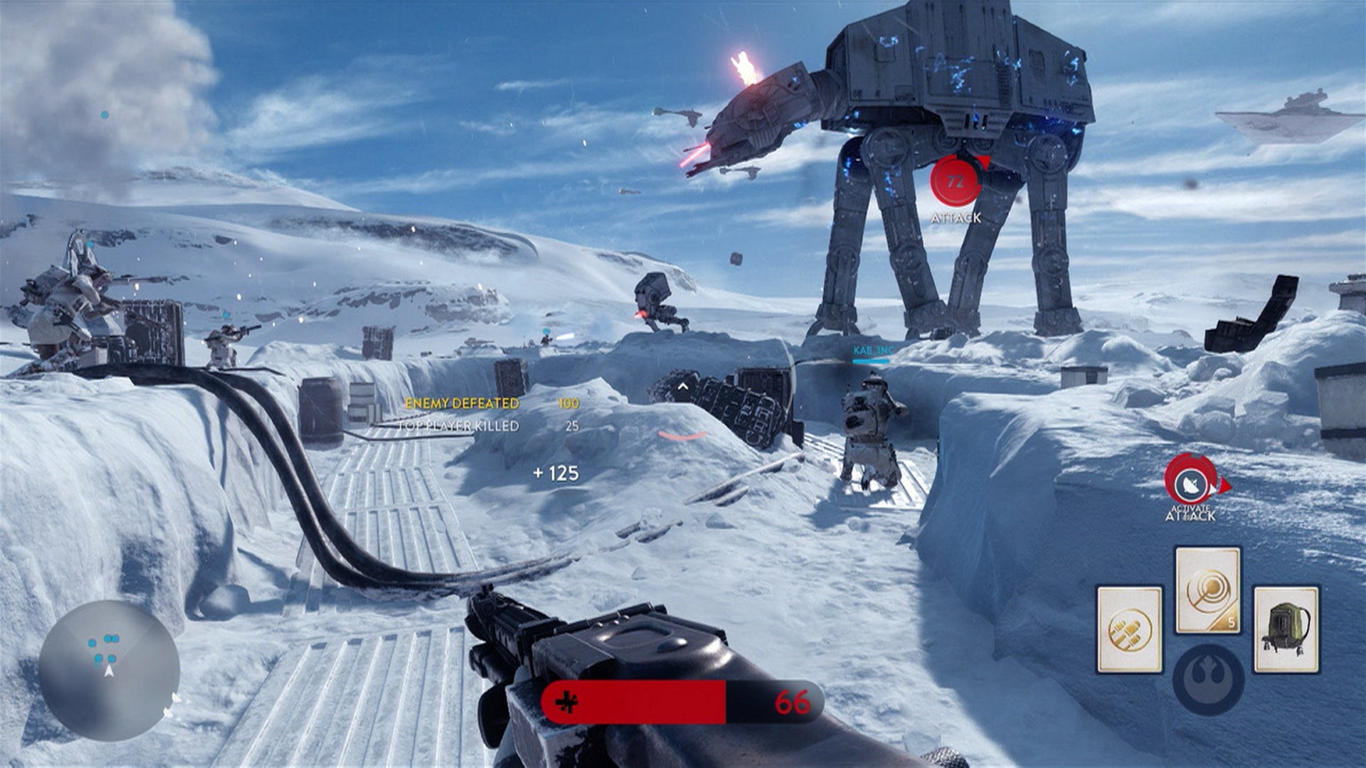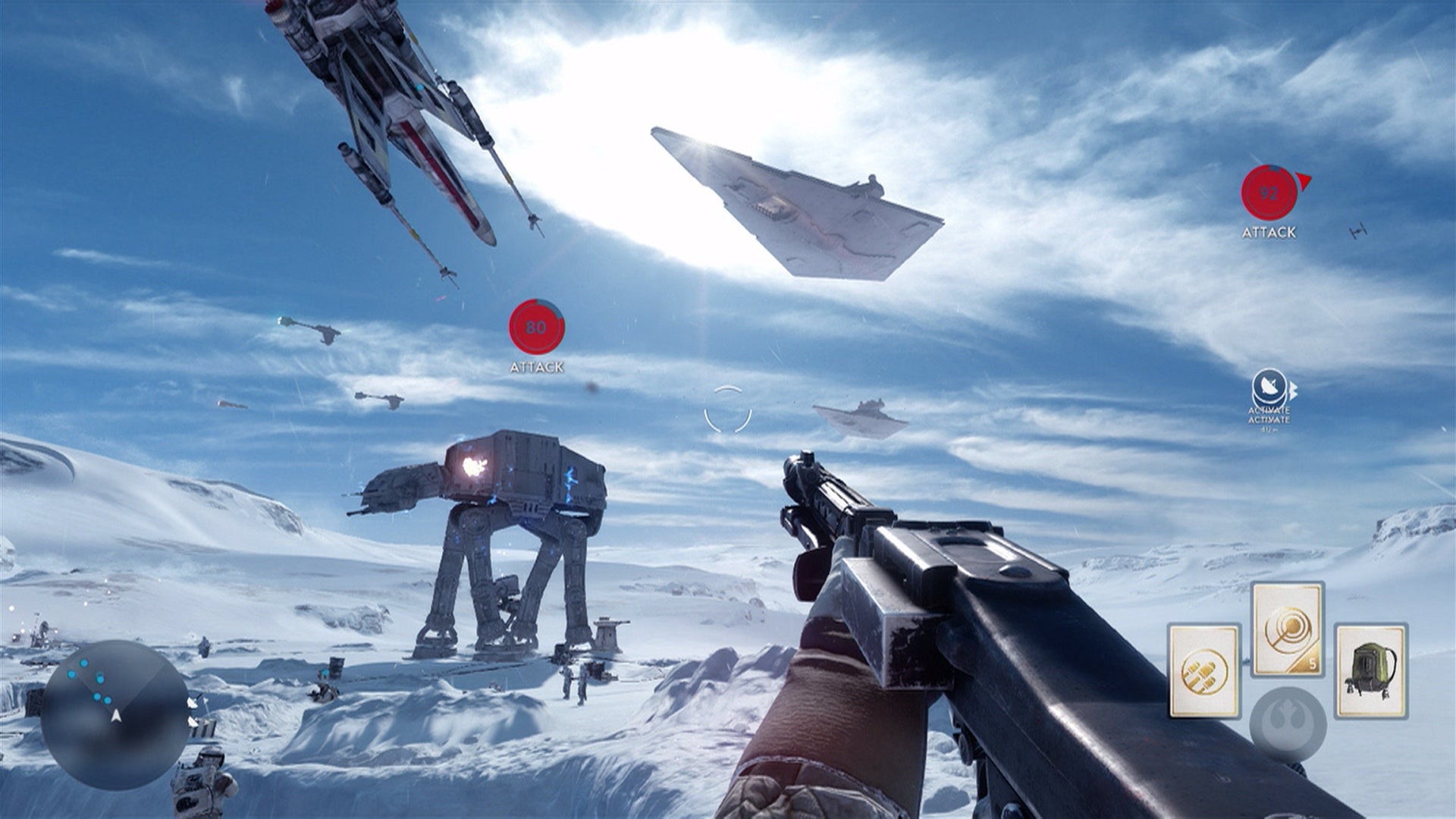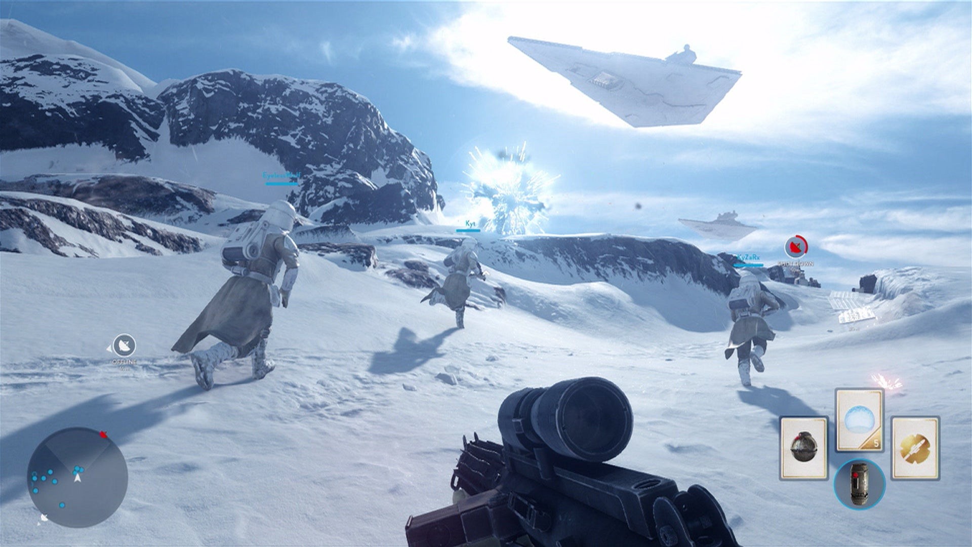 Despite the upscaled resolution, the game still looks good on Sony's machine (though in light of these metrics, we wonder if we'll see any improvement over Xbox One's limited 720p Battlefield presentation). From mid-air dogfights between X-Wings and Tie Fighters to on-foot battles against oncoming AT-AT walkers, DICE's work nails the aesthetic of the original films. And despite a confirmed cap of 40 players (lower than Battlefield 4's maximum 64), the scale of terrain is still broad enough to impress. However, it's fair to say its network of trenches and mountains don't come close to matching the sheer density of detail of the Endor woodland map shown in April.