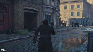 The sheer level bustle in Unity's streets isn't matched in Syndicate, and there's no in-game menu option to bring it back to that level. Sure, there are pockets of commotion on the streets, and horse-drawn carriages also fill London's wide arteries. But even in its busiest spots, the delivery is sparser by comparison to Paris - with fewer NPCs and less in the way of decorative objects lining London's roads. To an extent, there's an element of representing the city more realistically. As compared to France's capital at the time of revolution - where you'd expect swathes of crowds lining the streets - there's an argument that says that the British capital was never going to compare.