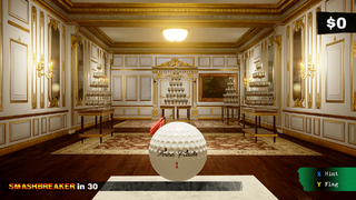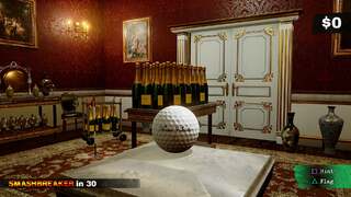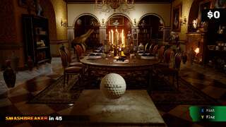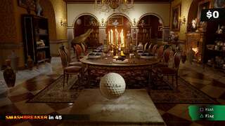 Wood splinters, glass shatters, and cloth burns. It may not always behave realistically, but the results are always entertaining. You could, for instance, have a multi-layered serving cart with bottles of champagne stacked on top while a collection of fine china rests on the bottom shelf. Each of these items are stacked together until your flaming golf ball makes its way onto the cart. The direction and force of impact are taken into account in order to determine break points, reactions, and velocity. The resulting debris, then, can start a chain reaction with surrounding objects to further increase your score.