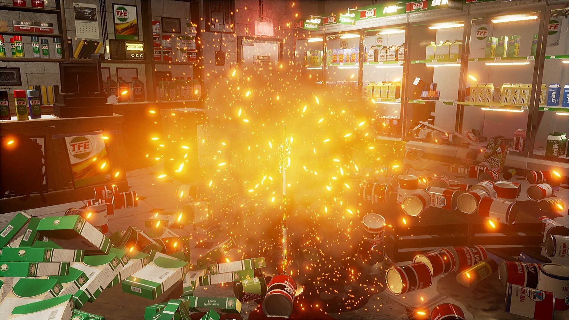 Each level focuses on a single room littered with all manner of objects, gadgets and furniture. Objects placed throughout the level are each assigned pre-defined physics properties designed to enable some explosive situations. Realistic physics are nothing new, but the sheer number of objects present in any given scene combined with the complexity of the interactions is what comes to define this game.