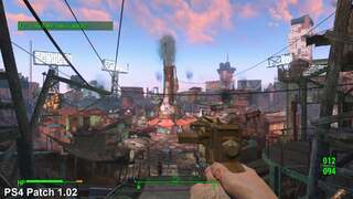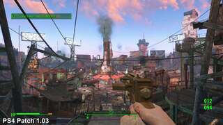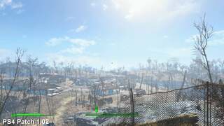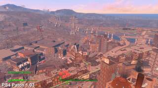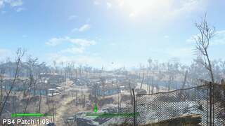 We're pleased to say it doesn't in general and both consoles hand in with near identical grades of performance before and after the latest update is applied. However, PS4 suffers somewhat in the transition in one area in particular: Diamond City. In this case, performance drops by 2-3fps on average on overlooking the centre, dragging frame-rate down in comparison to version 1.02. This is not an issue on Xbox One, which turns in identical readings while rising in a lift behind the city.