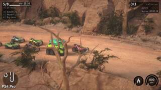 Mantis Burn Racing also taps into and modernises Micro Machines' core hook: multiplayer. Online racing supports up to eight players, while local multiplayer is taken care of via two and four-player split-screen. These modes also run at native 4K, which means that the quad-player set-up sees each participant get the same amount of pixel real estate as the base PS4 version. Effectively running two or four times the geometry and game logic takes its toll on frame-rate though: two-player adds a degree of wobble to the game's 60Hz refresh, while four-player sensibly opts for a 30fps lock instead.
