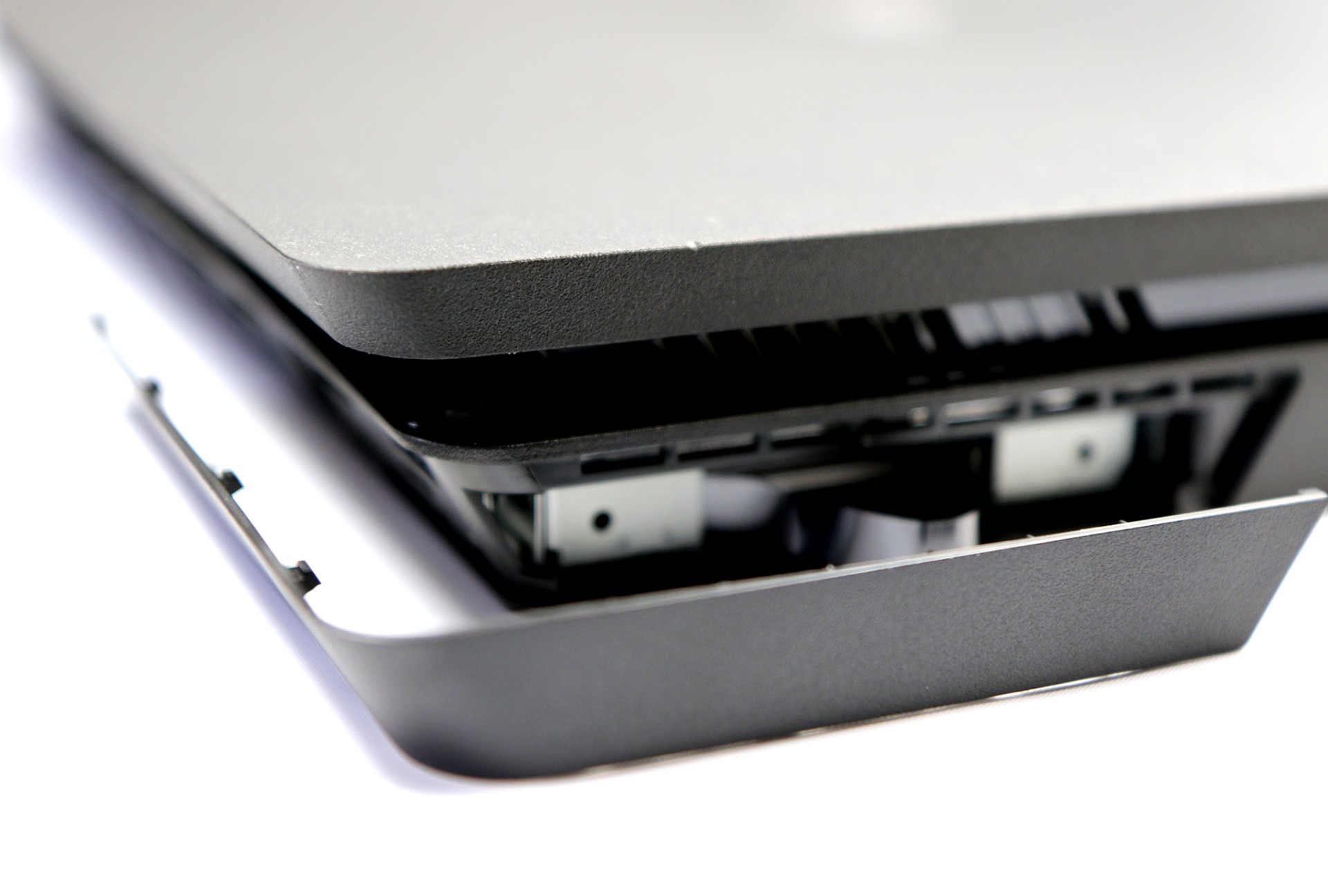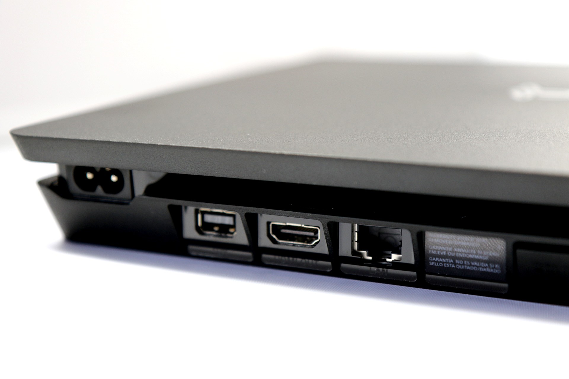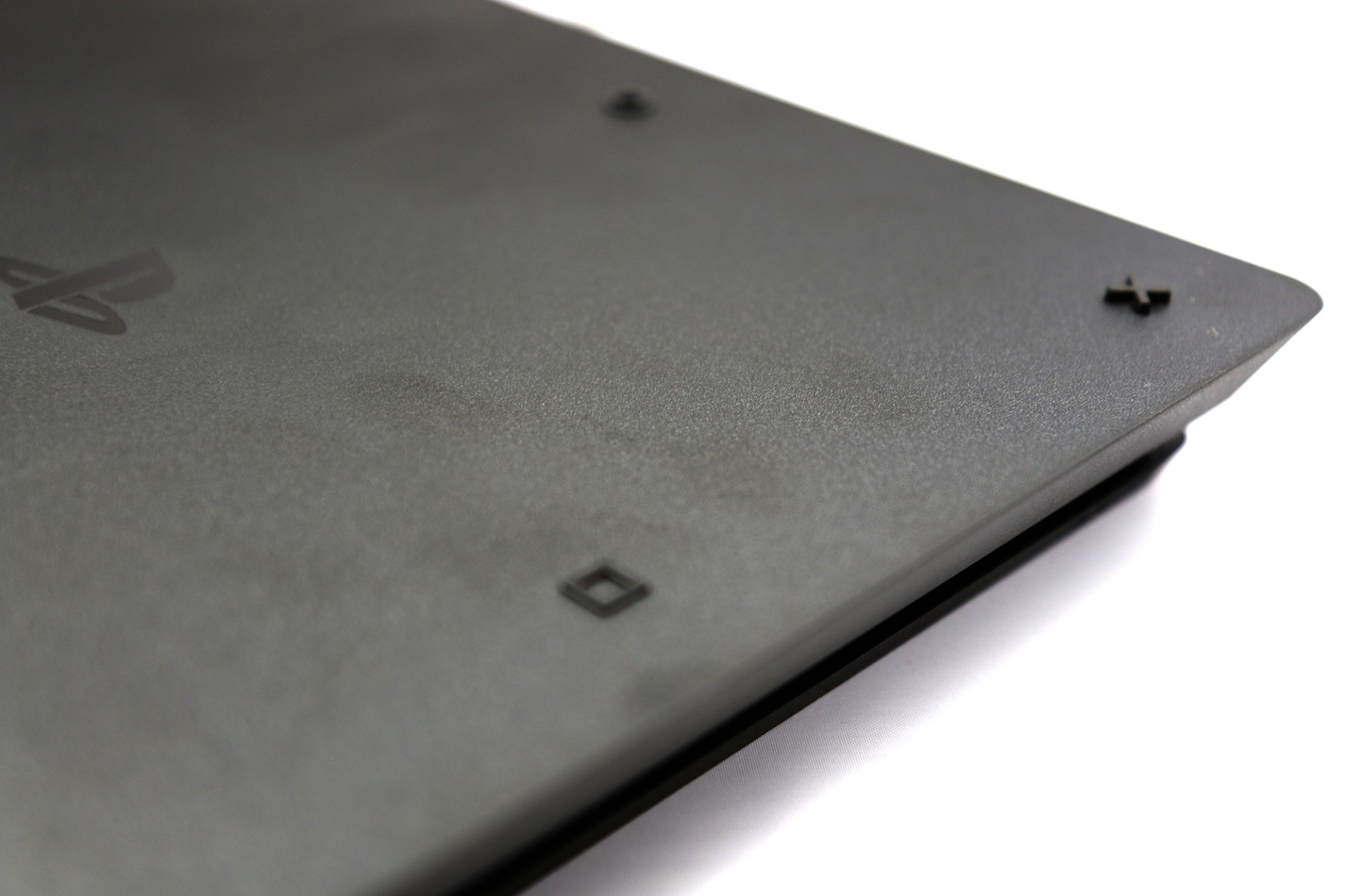 In addition to their appearance on the bottom of the unit, the PlayStation symbols are also embossed into one recessed side of the chassis, while on the other side, we see HDMI, DTS, Dolby and Blu-ray logos - telling us that, yes, this is still a standard 1080p HD console with no 4K pretensions. The PS4 Slim offers few core functionality upgrades and 4K streaming functionality is limited to the more expensive Pro model.