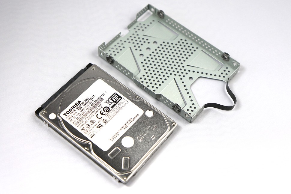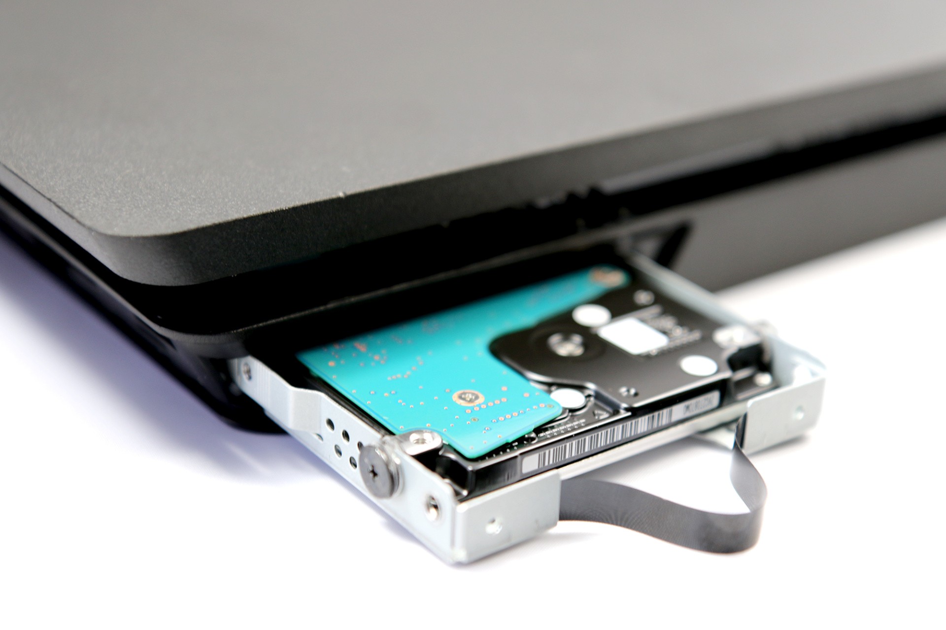 The hard drive situation sees the new PS4 Slim sit nicely alongside the existing models - meaning that upgrading the HDD is still an option - though it does look as though Sony has switched suppliers. The unit we looked at features a 500GB Toshiba MQ01ABD050 2.5-inch HDD, confirmed via a quick search as a standard 5400rpm drive. However, the means by which you gain access has changed. An L-shaped piece of plastic detaches from the side of the PS4's casing, and from there, the familiar PS symbol-embossed screw is removed in order to take out the caddy. The caddy itself features a metallic ribbon loop to pull on in order to facilitate easy removal of the drive - a nice touch.