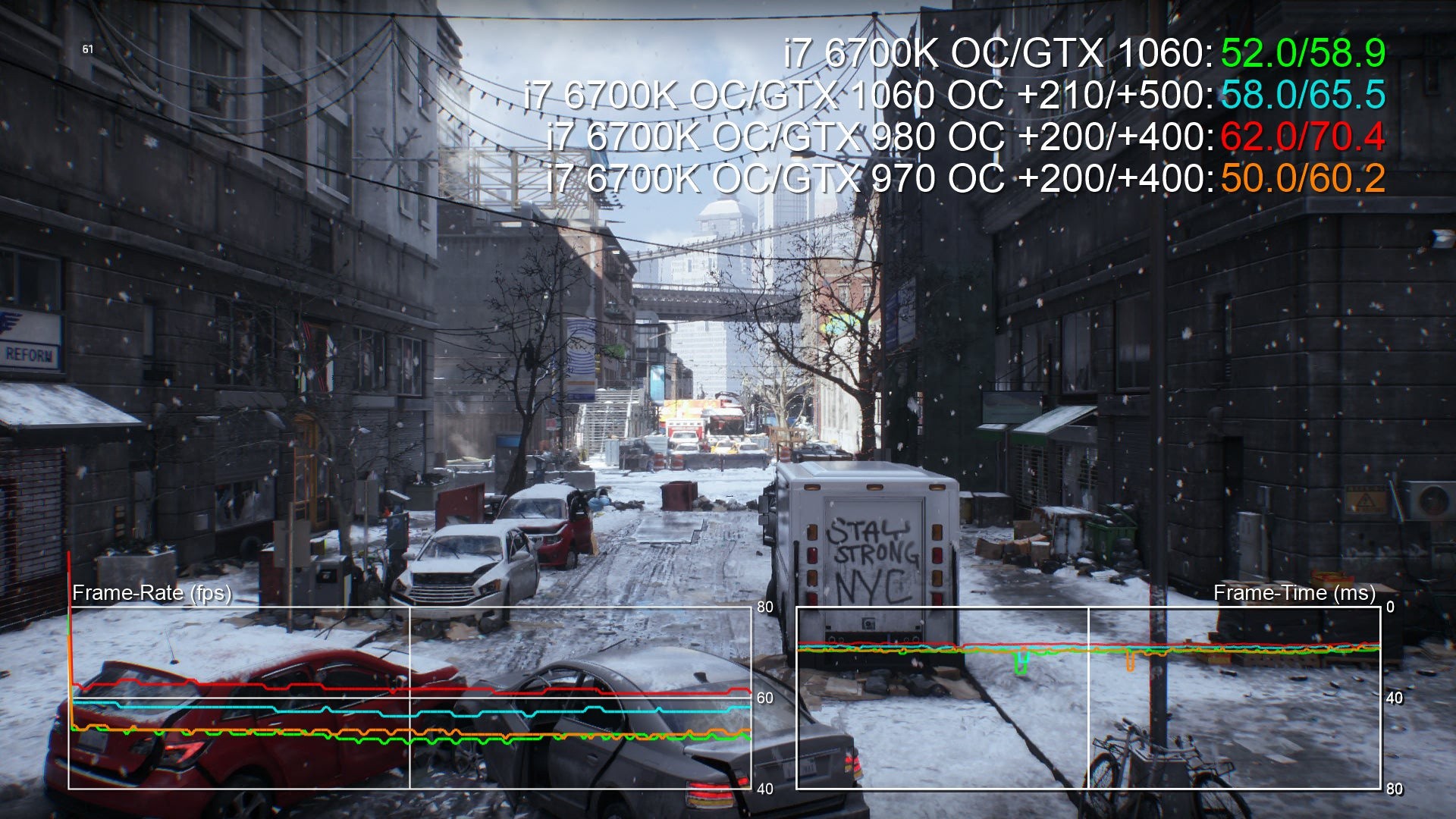 When we do this, we find that GTX 980 pulls ahead in many titles - and could inch a couple of fps ahead if we were more aggressive in with our OC profile (pushing core/RAM to the limit, over-volting etc). This very simple +200/+400 overclock also brings GTX 970 into contention, inching ahead of the GTX 1060 at stock clocks though the newer card more than holds its own once an OC is in place. It may be tempting to grab a bargain there with an older card, but really you'll be looking for a GTX 980 to see any kind of appreciable boost over the GTX 1060 - and thus far, discounts on the old flagship haven't been that enticing. On top of that, the extra two gigs of RAM on GTX 1060 is bound to come in useful at some point - probably more than the small performance increase. Also in GTX 1060's favour is that it seems clear that the implementation of new DX12 features like async compute will be the preserve of Pascal cards, with the chances of Maxwell support looking less likely.