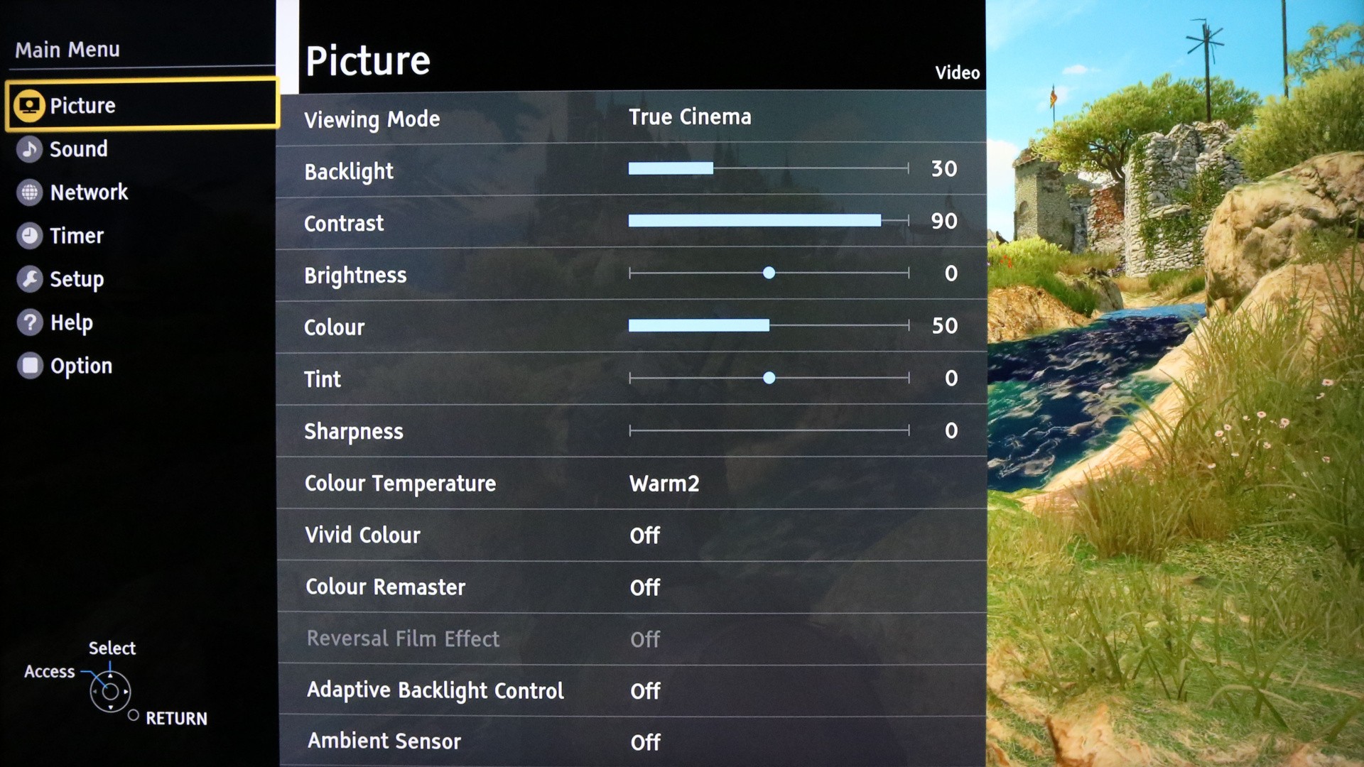 Titles such as Forza Horizon 3 and Uncharted 4 features plenty of pop while remaining accurate to the developer's vision, with nicely saturated colours and a solid level of depth. More importantly, controls feel responsive on the DX750 with 60fps shooters and fighting games feeling good to play. Using the Leo Bodner Lag Tester input latency came in at 41ms in game mode (using True Cinema preset), which provides a very good experience with only a mild delay in controller response. Compared to the brisk 19ms on the Samsung KU6400, it's possible to feel the increased latency, but games never come close to feeling heavy or compromised.