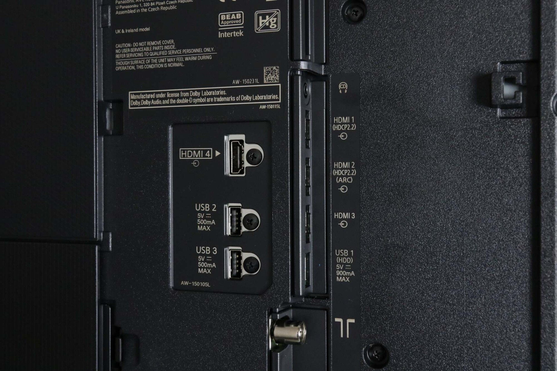 Around the back of the TV both the power and AV connections are hidden behind plastic covers that easily snap in and out of place, allowing for tidy cable managements. Here we have a range of inputs comprising of 4x HDMI, only two of which are HDMI 2.0a with support for HDCP 2.2 and HDR, 3x USB (1x 3.0), and an Ethernet port. The only legacy connection comes in the form of a dual component/composite input and RF connector, meaning that converters are required for SCART and S-video sources. These are joined by a 3.5mm headphone jack and an optical output.