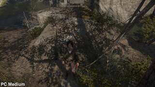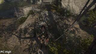 Dynamic foliage: This setting controls the interactivity of plants and bushes throughout the world. On Xbox One the medium setting is used, enabling larger plants to react realistically to Lara's movements. By bumping this up a notch to high, we see a greater variety of plants and branches react helping to build an even more interactive environment.