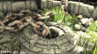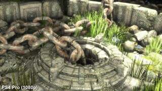 From a performance perspective, the bottom line is this. The only option available to PlayStation gamers in getting a regularly smooth 30fps is to use PlayStation 4 Pro, running at 1080p. If you're on a regular PS4 you're in for a very variable experience; lurching between 20-30fps just by running around empty areas, and with stutters to over 110ms. All playthroughs have full v-sync, and there are thankfully no frame-pacing issues at 30fps, but sadly playing The Last Guardian on a standard PS4 easily gives the worst performance of all three options.