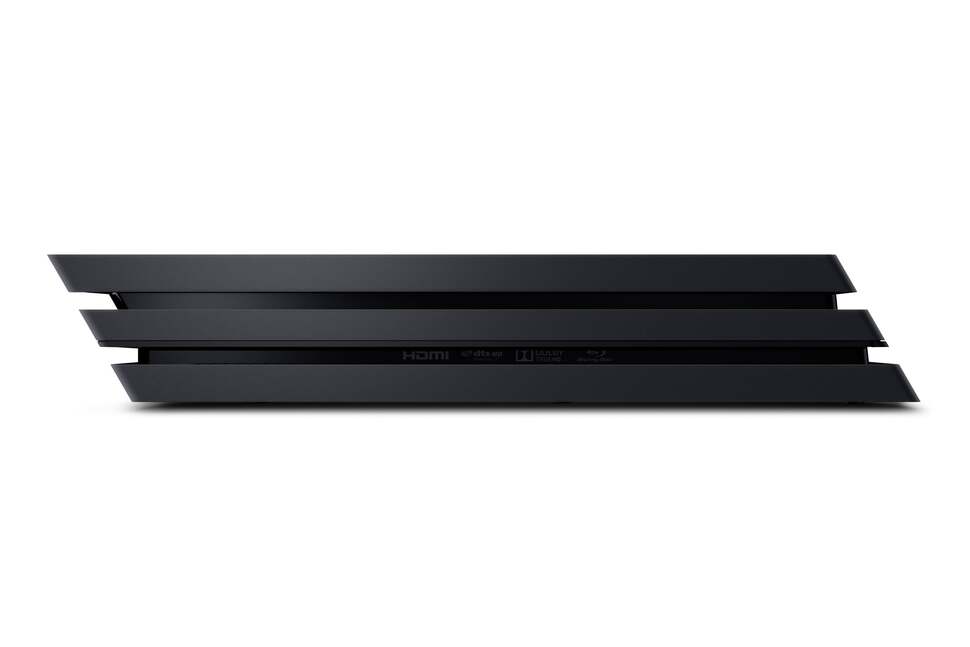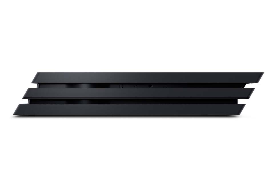 But first, let's talk about the actual box itself. It turns out that the PlayStation 4 CUH-2000 'Slim' leak was even more significant than we realised. It was a preview of the design language that would carry across the entire PlayStation line, and the PS4 Pro (CUH-7000, designation fans) looks very much like a bigger brother of sorts - a bigger, fatter, triple-decker but with very similar design cues, right down to the collection of PlayStation symbols on the underside of the unit. Curiously, the LED strip-light found on the side of the CUH-1000 series PS4 has been relocated to the front of the machine, recessed into the lower 'slash'. And yes, finally, we have a rear USB 3.0 port in addition to a brace at the front.