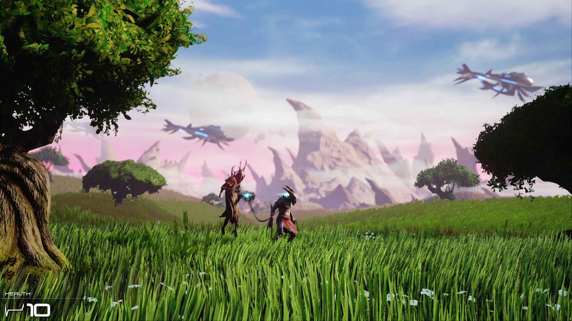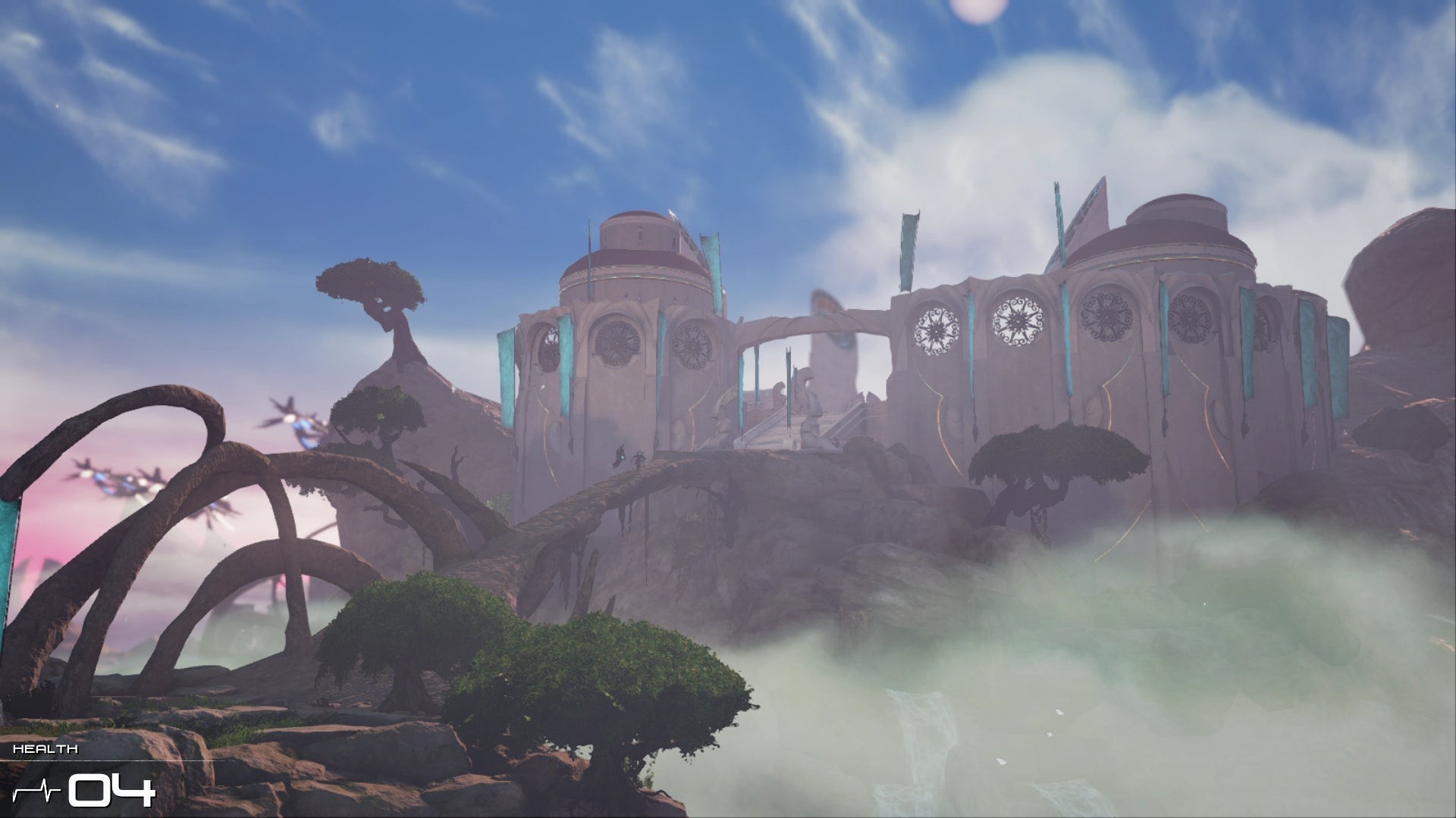 Physically-based rendering and per-pixel lighting give much of the alien landscape a realistic feel, with stonework, water, and mud appearing authentic as you battle your way through grassy plains, underground catacombs and other distinctive locals. High-dynamic range effects, bloom, and multiple light sources produce a district glow to the surroundings too and is often used to help generate atmosphere across the game's various stages. This combination works particularly well in The Dryad Kingdom, where volumetric effects and layers of fog in the background create a foreboding environment that draws the player into gloomy darkness.