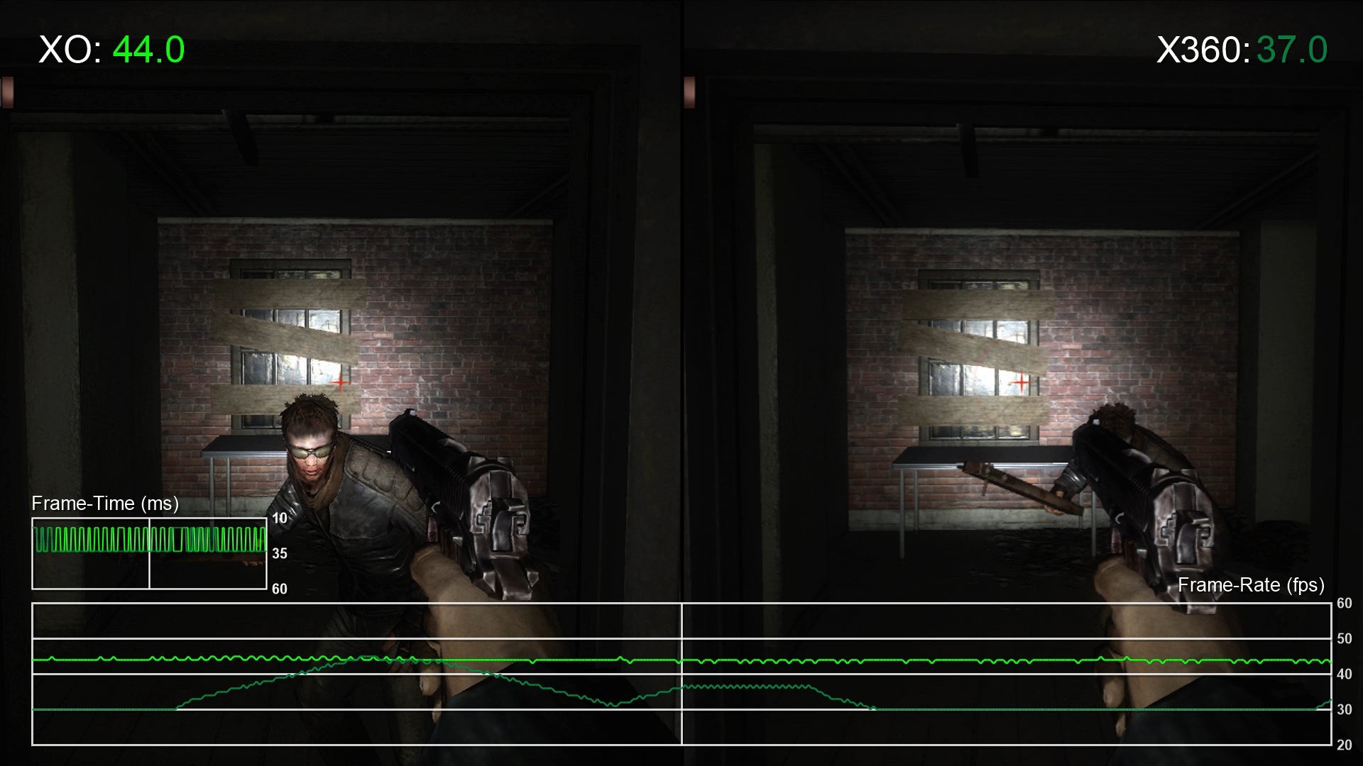 Condemned was a memorable launch title for Xbox 360 so we were intrigued to see how it would hold up on Xbox One. The results are certainly rather interesting here and not at all what we expected. Basically, on Xbox One, we see an average frame-rate of around 45fps, which means plenty of image judder. During cut-scenes the 360 turns in a reasonably stable 30fps instead which actually looks much better in motion due to even frame distribution. However, during gameplay, we see something rather curious.