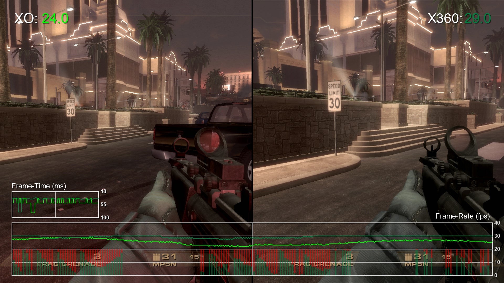We spent some time sampling Vegas on Xbox One and Xbox 360 only to discover that this title suffers from pretty noticeable drops on Xbox One. While Vegas is indeed an Unreal Engine-powered game, it does not actually use UE3 - it's based on the older Warfare variation, much like the original Bioshock titles.