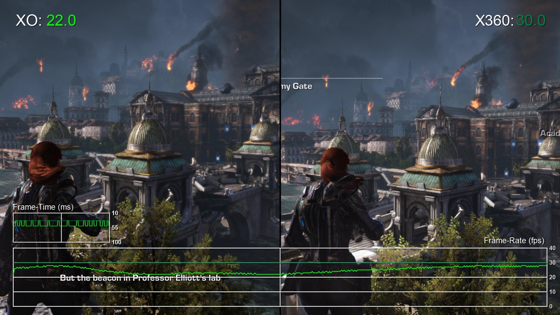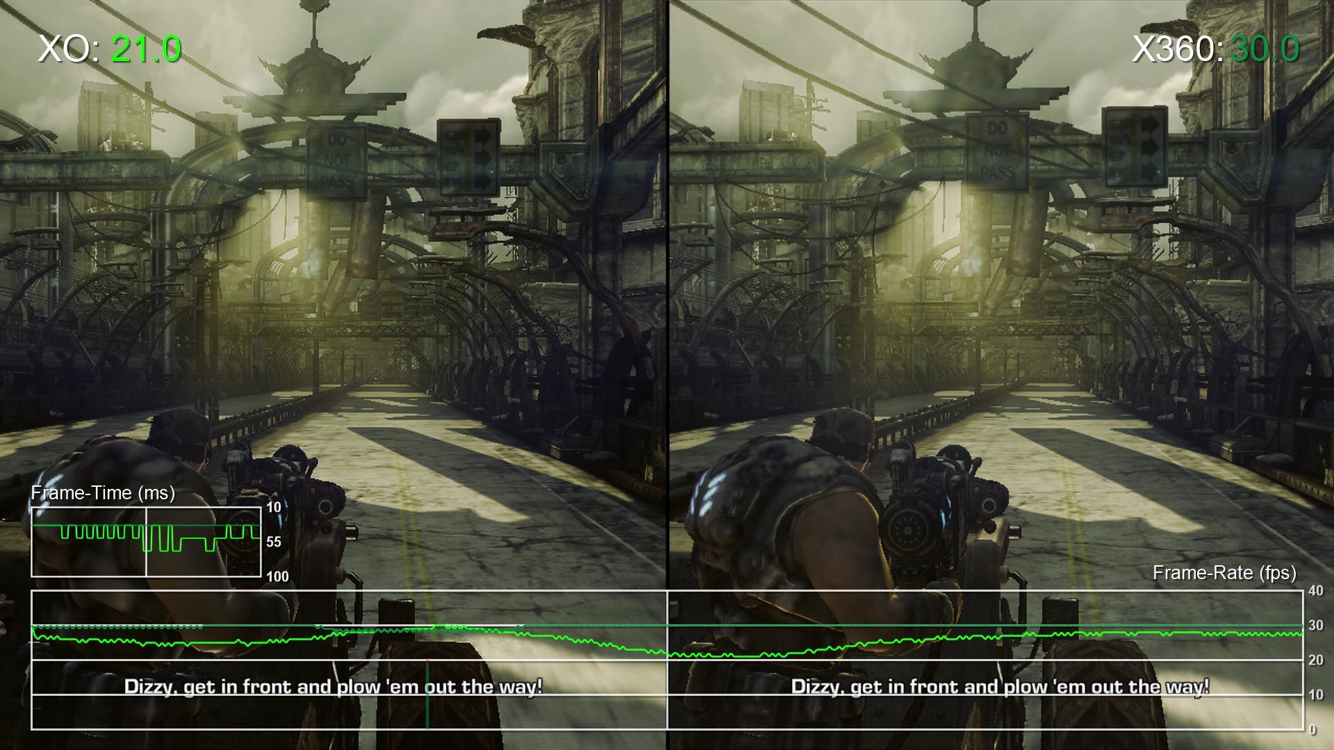 However, once the game begins proper, the narrative changes as we see the Xbox 360 pull ahead in terms of performance. Extended combat sequences tend to operate up to 10fps slower on Xbox One resulting in a less playable experience. It's fair to say that cut-scene demands differ significantly from battles against hordes of locust enemies supporting our theory that CPU heavy situations suffer the most from performance loss.