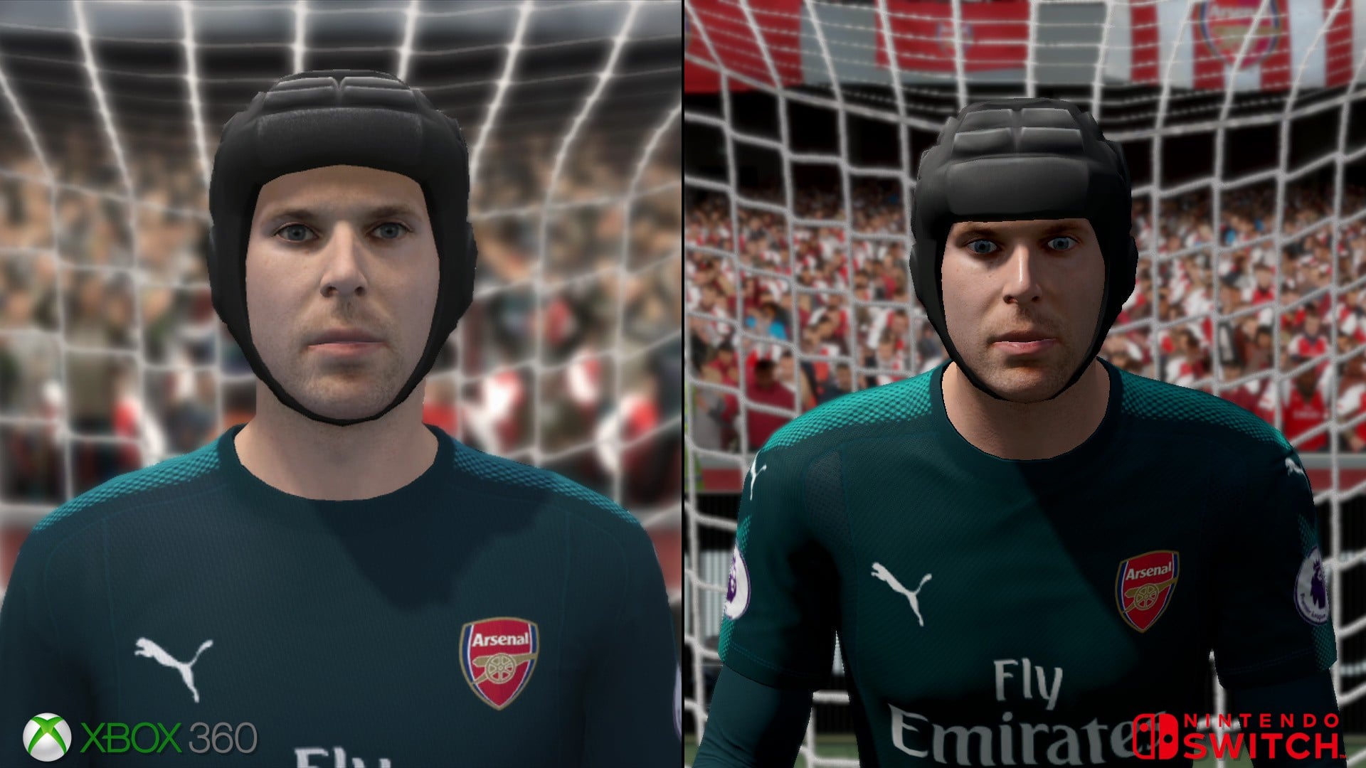 The visual package is also a mixture of old and new. Last-gen foundations are enhanced with higher quality effects and lighting. For example, pre-match sequences and replays use the same camera set-up and controls across both Switch and Xbox 360. Core assets are taken from the last-gen Legacy Edition, so player and stadium modelling appear very similar, as do player animations. The 3D crowds present on the current-gen builds are also pared back to animated 2D sprites - a common sight amongst Xbox 360/PS3 era sports titles.