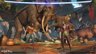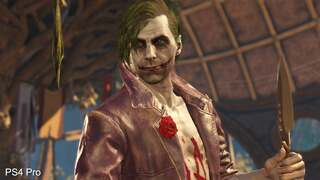 Shadows are also updated here, though not in the way we at first expected. Regular dynamic shadows from characters use the same resolution between PS4 and PS4 Pro - but it's in ambient occlusion quality that we enjoy some gains. In this case, PS4 and Xbox One apply an approximated form of shading that creates a thicker shade in the background. It's a symptom of less taxing forms of the effect, like SSAO, and by comparison PS4 Pro offers a more precise approach. A matching frame of Joker's intro sequence, for example, shows subtler pockets of shade forming across the Jungle City stage with a more natural result.