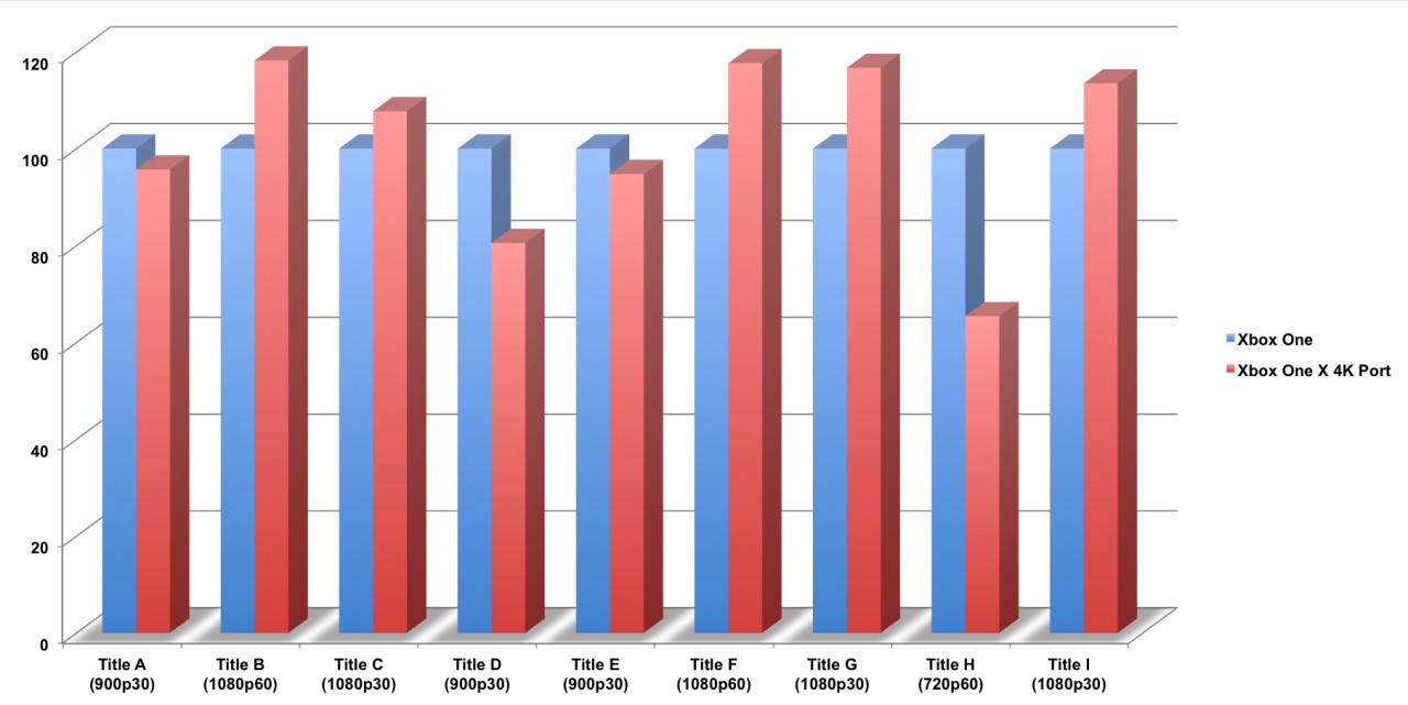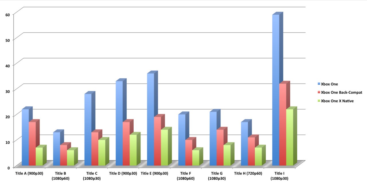 In the documents we've seen, Microsoft provides like-for-like resolution data between base hardware and Xbox One X running at the same resolution. This may not seem particularly useful in and of itself - aside, perhaps, from revealing the staggering amount of GPU overhead available to developers if they decide to stick to the same resolution. However, this data does tie into the backwards compatibility functions Xbox One X has with existing Xbox One titles.