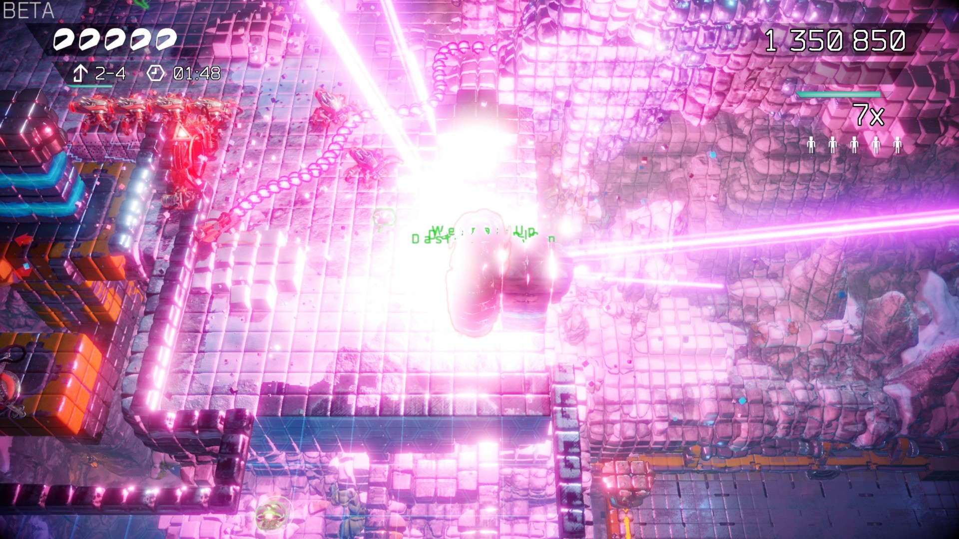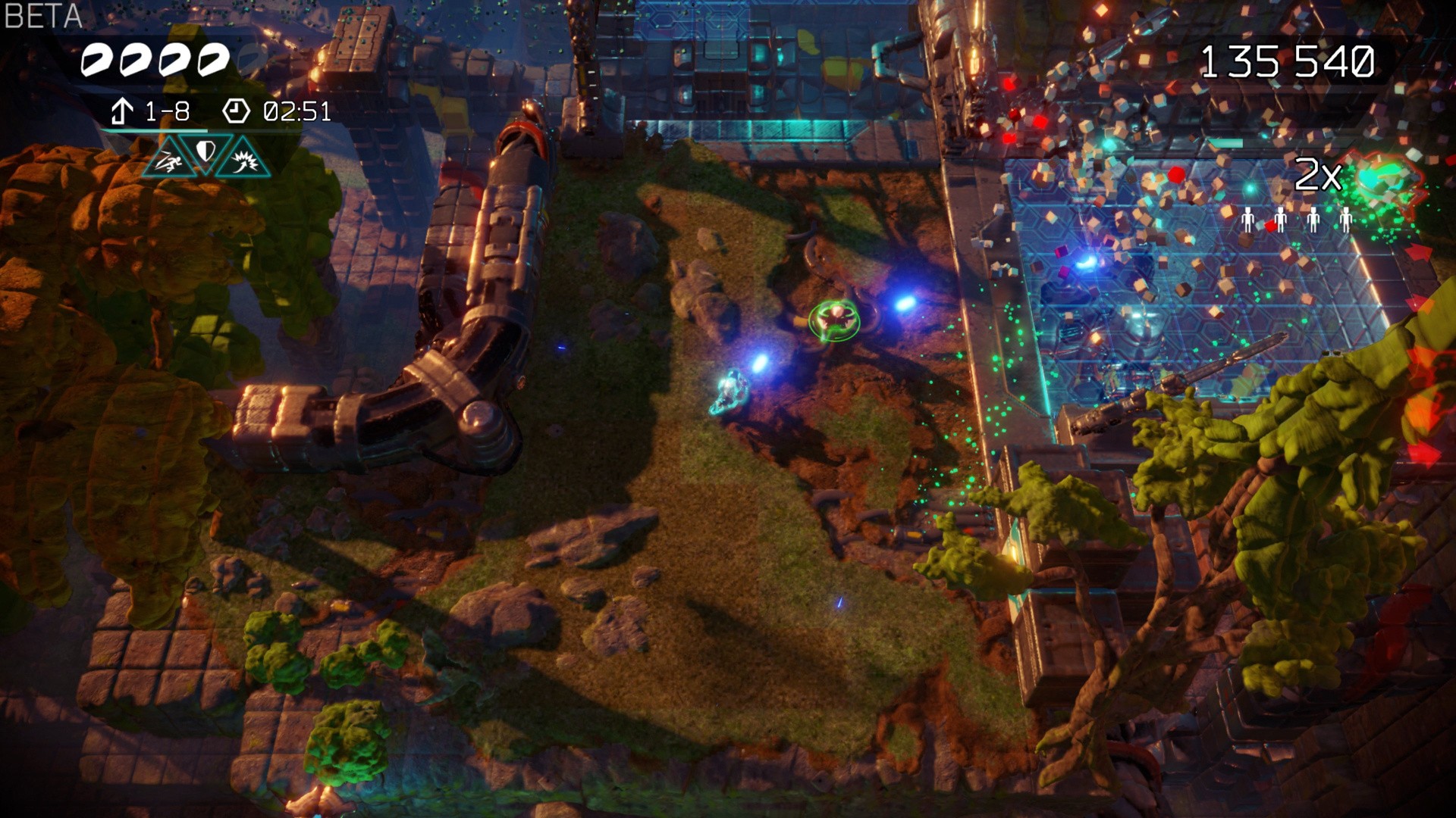 Nex Machina is all about blowing up stuff, and there's never a lack of enemies or objects to blast into pieces through the stages present in the beta, resulting in lots of colourful particles and some impressive physics-based destruction. It's absolute carnage, with the experience playing out like a turbo-charged Robotron crossed with a bullet-hell shooter. This is an experience that Housemarque specialise in, and the implementation here is their most accomplished yet.