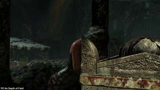 Secondly, the Gamescom build of Rise of the Tomb Raider on Xbox One X runs with depth of field disabled, giving the illusion of further detail resolved in the scene even though it's an important effect in the post-process pipeline that has actually been removed (for now, at least). Stacking up Xbox One X's results against PC with the same effect disabled, we get a very close match in detail, confirming higher quality assets on the new console build. It's strange that the effect is missing, as it was present in the original Xbox One release. It will be interesting to see if it reappears in the final build and, if so, whether or Nixxes they use the higher quality bokeh depth of field available on PC.