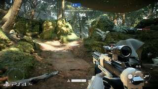 Move into less stressful situations, such as the Naboo palace interior, or the strike mission set on Takodana, and frame-rates come much closer to hitting 60fps. It's not perfect, but the dips are less noticeable than the Galactic Assault mode, and the game spends more time at that buttery smooth, flawless updat rate. Out of the base consoles, the PS4 comes out slightly ahead, with fewer drops in performance when the engine is under load, with matches feeling a little more consistent in terms of smoothness. In comparison, the PS4 Pro generally comes very close to hitting 60fps, and performance there is much to closer to the original game running on Xbox One.
