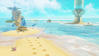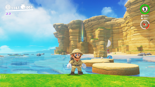 With that, you get all the bells and whistles while docked, and it's hard to pick much fault with the engine's delivery. Parallels with Mario Galaxy are hard to ignore too. On the beautiful Seaside Kingdom stage, the open-ended design harks back to Mario Galaxy's more free-form levels; a watery playground with quite literal depths to exploration - sporting beautiful shaders for its lava and water. Sure, pop-in on enemies and objects is in full view on Switch - even docked - but it's far-flung enough that it isn't a big distraction. Even with the new Cappy mechanic, letting you take control of enemies, the freedom and multiple objectives make this feel like Mario Galaxy 3.