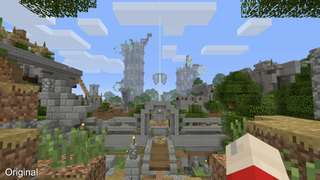 For a game like Minecraft, a resolution boost is deceptively useful. Of course, this title takes pride in its simplicity, with low res textures used to build a world of blocks. But this jump to 1080p has a big benefit for greater, long-distance views of the land. Looking over your creations at range, the upgrade is impossible to ignore when directly compared to 720p imagery, taken from the launch version of the game. A surprise bonus here is that texture filtering also gets a boost on Switch, with the higher resolution increasing the pixel sample range: this means you get clearer, cleaner surfaces at a tight angle than you did before.