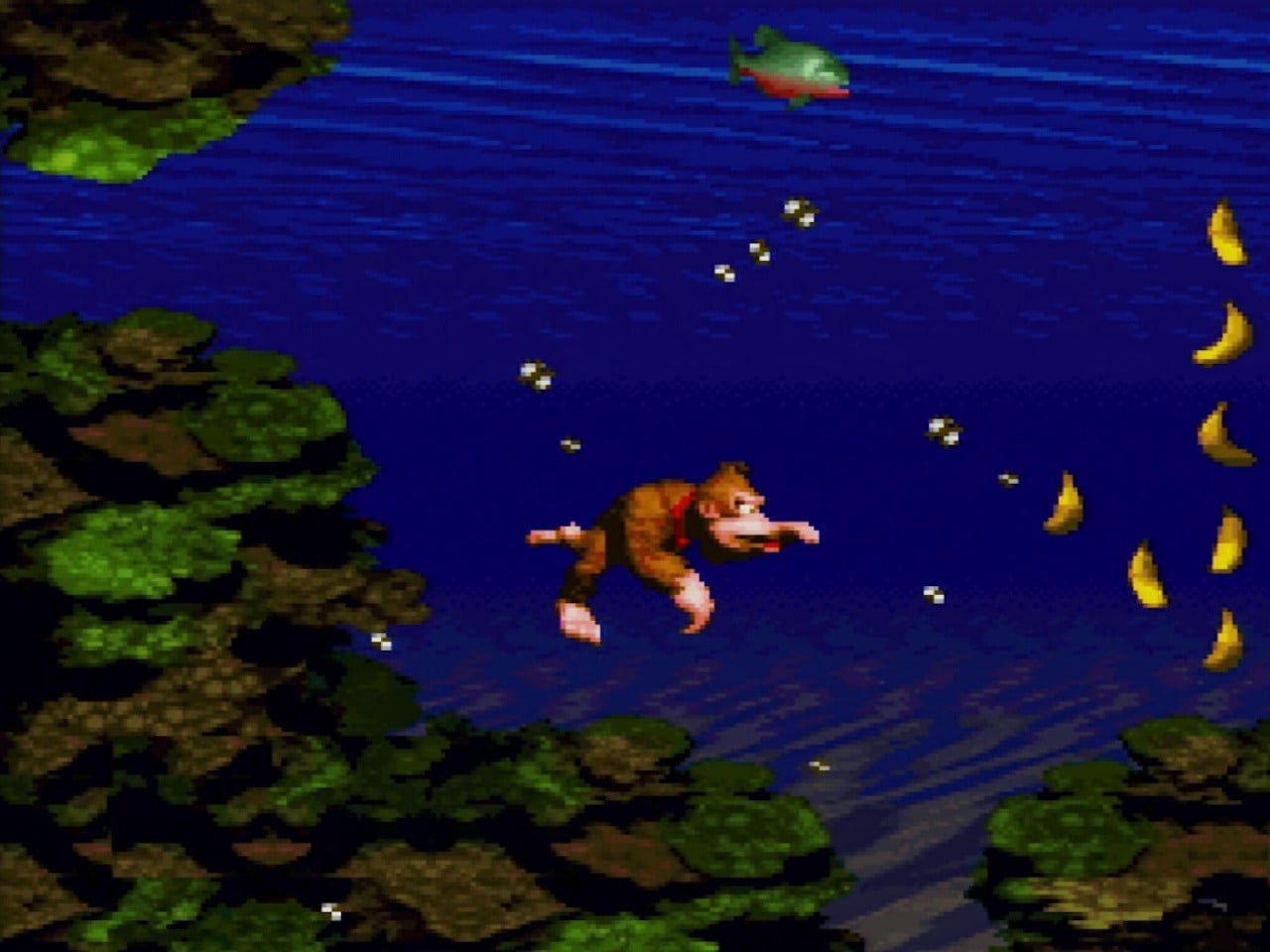 The water segments were also impressive: the subtle ripples, rich parallax backgrounds and great colour usage really gave the impression of swimming deep below the water. The mine stage is another triumph - swinging lights use the transparency function to create atmosphere while the light cones themselves use rotation to gently swing back and forth. There are all sorts of great tricks like this. Even without the use of custom hardware, Donkey Kong Country would stand as Super NES technical showcase - and that's before we've even factored in the stunning David Wise soundtrack.