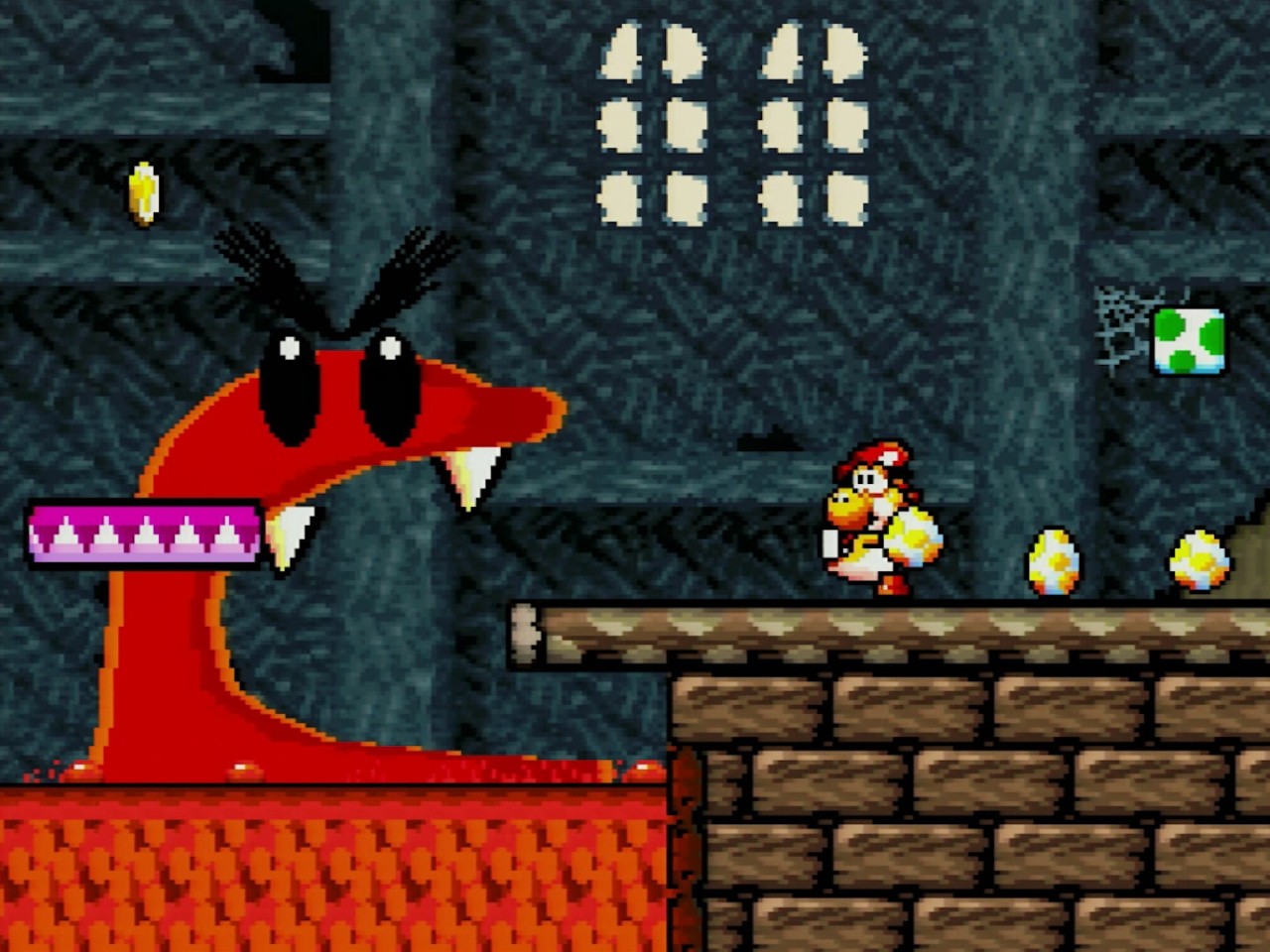 The faster RISC hardware was capable of so many different types of operations, and while Yoshi's Island does make use of polygons in select scenes, its usage is focused more on sprite scaling and rotation, among other things. The game is extremely heavy on special effects and animation. It's the kind of stuff that a stock SNES has no business pulling off and even compared to the consoles that would follow in its wake, Yoshi's Island looked and played beautifully. It also marks another first - until the SNES mini, Nintendo had never re-released the original Yoshi's Island on any other platform. If you wanted to play it, you were stuck with the Game Boy Advance conversion which, while not terrible, is a downgrade from the original in many ways.