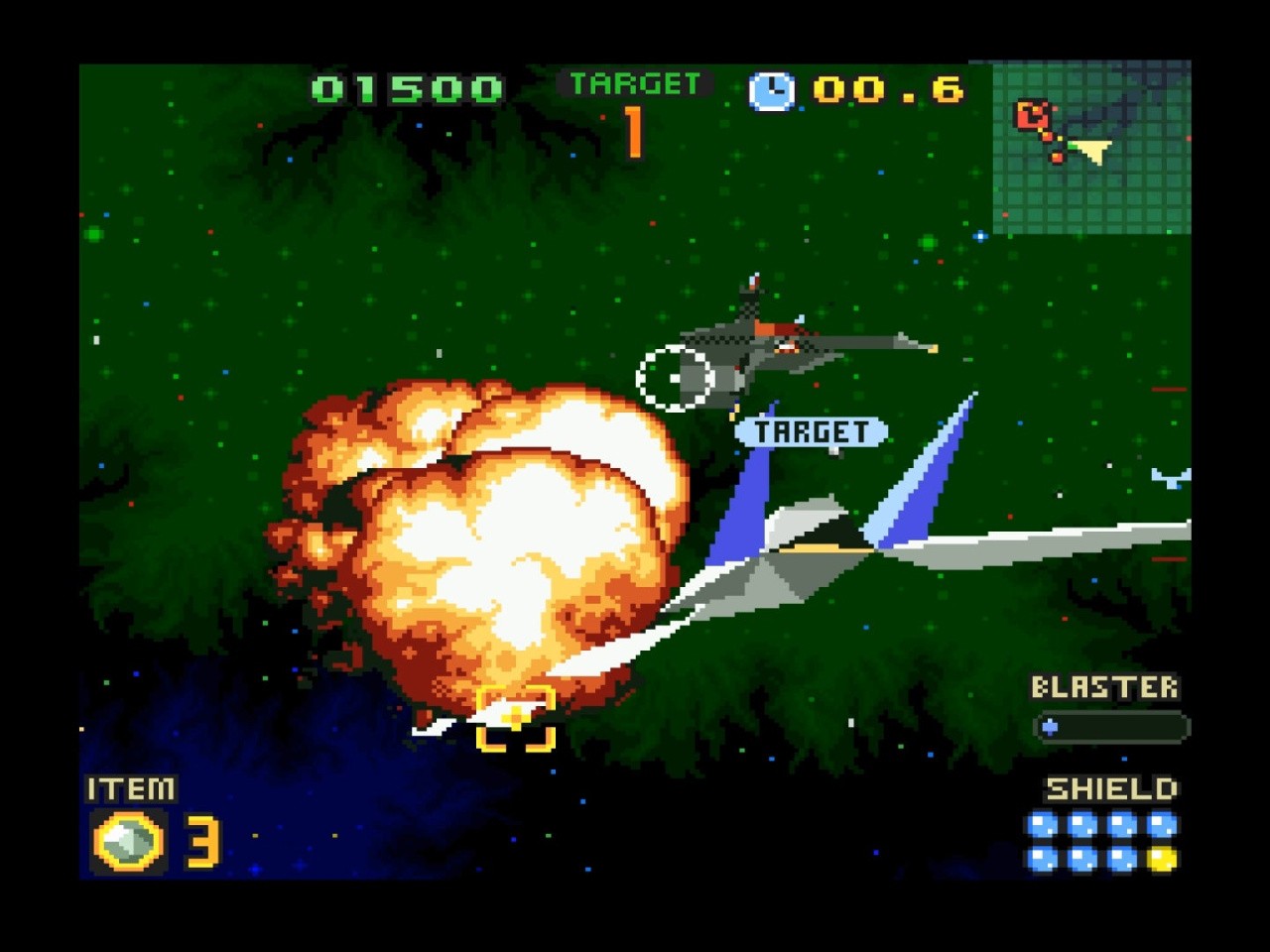 We have full 3D objects with rotation and animation as well as point rendering, for stars and dots along the playfield, line segments for wire-frame objects and more. Filled, flat shaded polygons are used for most of the game's visuals while scaled sprites are used for objects such as asteroids. There's even light point-sampled texture mapping in spots. The primary limitations here are, of course, the low performance and the small display window.