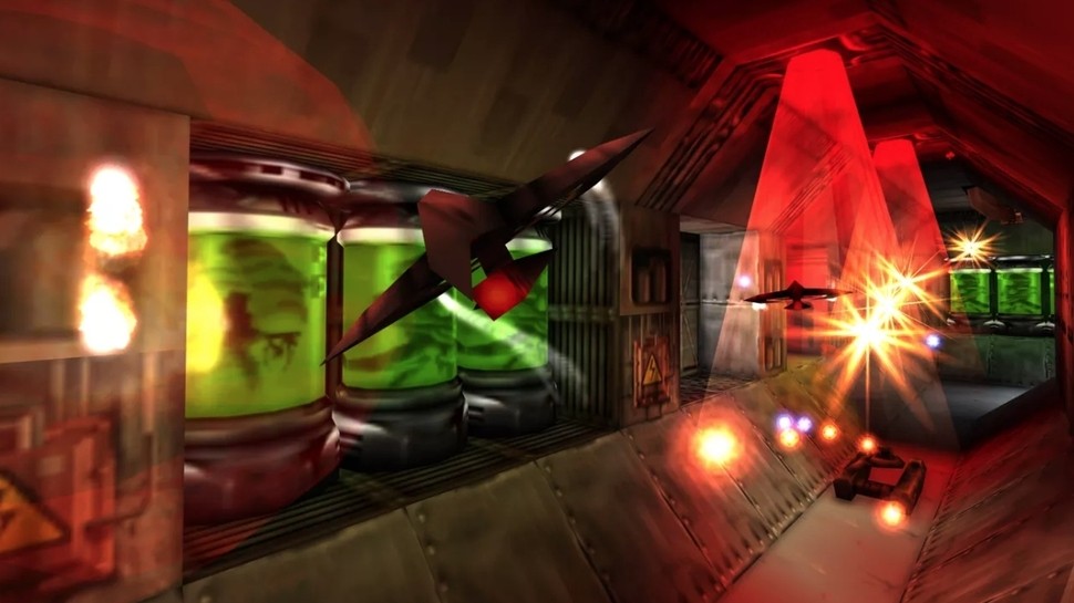 The original game launched in 1998 for Microsoft Windows, PlayStation and Nintendo 64. It was developed in the UK for PC and PlayStation by Probe Entertainment while Iguana Entertainment UK handled the N64 version. Forsaken featured much the same gameplay formula as Descent, but thanks to its more advanced graphics engine, the visuals are less abstract than Descent, making it easier to navigate the complex structures. The action features a Doom-like quality to it with large numbers of enemies swarming the player at any point - and this mix of hectic action with fluid controls and puzzle solving feels great even today.