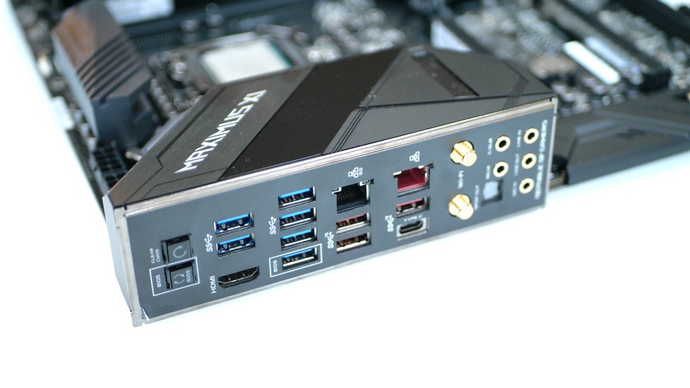 The Maximus 11 Extreme is based on the new Z390 chipset, delivering native 2x2 AC WiFi and second-gen USB 3.1 - but really this is an evolution of the existing Z370 with little in the way of new, game-changing features. On the flipside, an existing Z370 board will run the new Intel processors just fine and the BIOS updates required to do that rolled out some time ago. For its part though, the Maximus 11 Extreme includes a colossal range of features. Yes, it has comprehensive Aura RGB lighting, an OLED display that helpfully monitors CPU temperatures, along with Asus's signature extreme levels of backplate IO. Designed for overclocking, all the headers you'll need for liquid cooling are present and correct, while Asus opts for SupremeFX S1220 eight-channel sound and a high-end DAC. Two eight-pin CPU power inputs are also delivered - quite possibly overkill, but overkill seems to be the prevailing philosophy behind this board. It's beautifully built, it has to be said.
