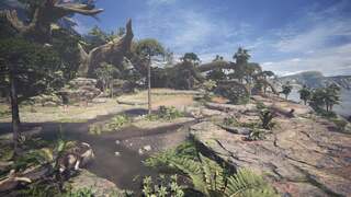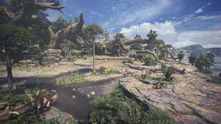 Over the course of the game, players explore a variety of unique locales with their own biomes. The first area, for instance, is rich in detailed foliage that blows in the wind and spills out over your path. Some of it is interactive, other patches of foliage have no collision, but the overall look is still excellent, while the overall sense of scale offered by the game's extensive vistas is revelatory. This is tied together in Astera - the base camp for all hunters. Recalling the designs of Monster Hunter Tri on Wii and Wii U, this area takes things further with towering structures, twisting staircases and clutter packed into every corner.
