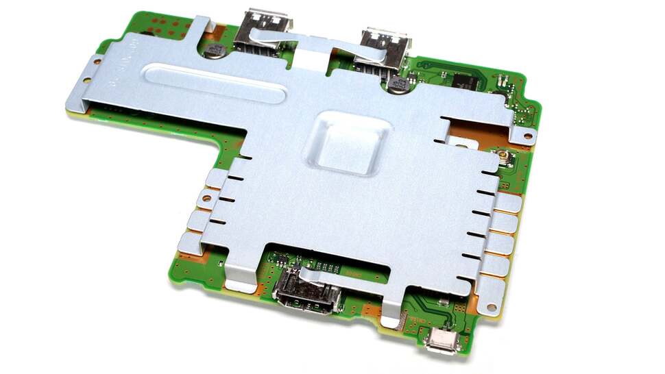 Removing the bottom half of the casing gives us our first look at the board inside. Not surprisingly, this is a custom design by Sony Interactive Entertainment, labelled as such. Four shorter screws hold the PCB in place, and again, they're very easily removed, allowing you to pull the mainboard away from the casing.
