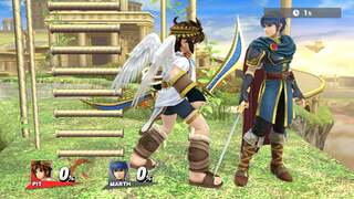 Dynamic shadows on characters return from Wii U, meaning that every limb casts a crisp point of shade on the ground. It's a big leap over the basic circles used on 3DS, and also compared to the presentation on Nintendo's last home console. On Switch, all geometry has full self-shadowing from characters. It means you get more visible shadows across the background of Hyrule, and from Pit across the ladders in Palutena's Temple. The only sore point here is the actual resolution of the shadows is visibly low. You can't help but notice that some stages - especially larger-scale areas - simply fail to filter the edges, leaving them looking pixelated. Wii U didn't have such a big issue by comparison, and it's definitely a rough point on Switch if you look too closely.