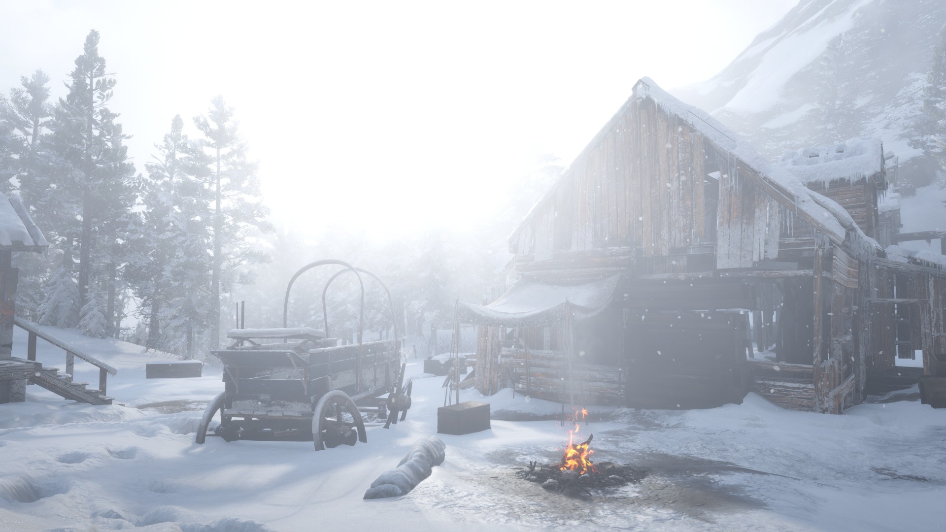 In the image above - which like all the comparison images has been taken with the in-game brightness slider maxed out to 500 - we can see the moonlight at 500 nits of luminance, however there are no other HDR level highlights in the image, even in the glimmers in the snow. Rise of the Tomb Raider, Forza Horizon 4 and Battlefield 5 all present these snow glimmers with increased intensity in their true HDR outputs. This lack of contrast within brightness values continues in daylight too. Here you can see both reflected snow which is almost 400-500 nits from a sun that is also 500 nits. Sitting on a floor of excessively bright light, we can see a lit campfire, which again is very close to 500 nits. Again, this wouldn't present like this in a properly executed HDR presentation.