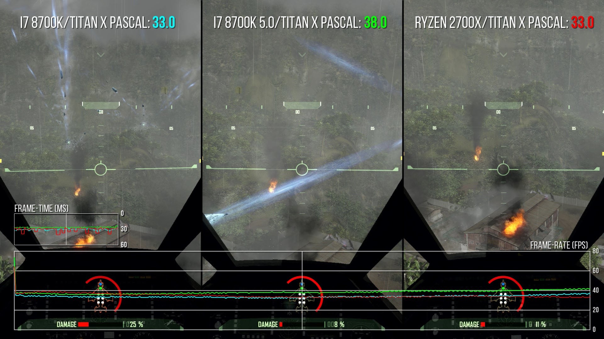 In intense, physics-driven firefights with a lot of enemy AI, you can also expect frame-rates to struggle. The Intel chip keeps you north of 60fps a lot of the time, but we were surprised to see how much the new Ryzen 7 2700X struggles to maintain 60fps in the heavier scenes - even with its XFR tech working exactly as it should, propelling the active cores to a max 4.3GHz. And it's here where the case for a proper Crysis remaster can start to be made. In fact, it already has been made - it was just never released for PC, instead arriving on Xbox 360 and PlayStation 3.