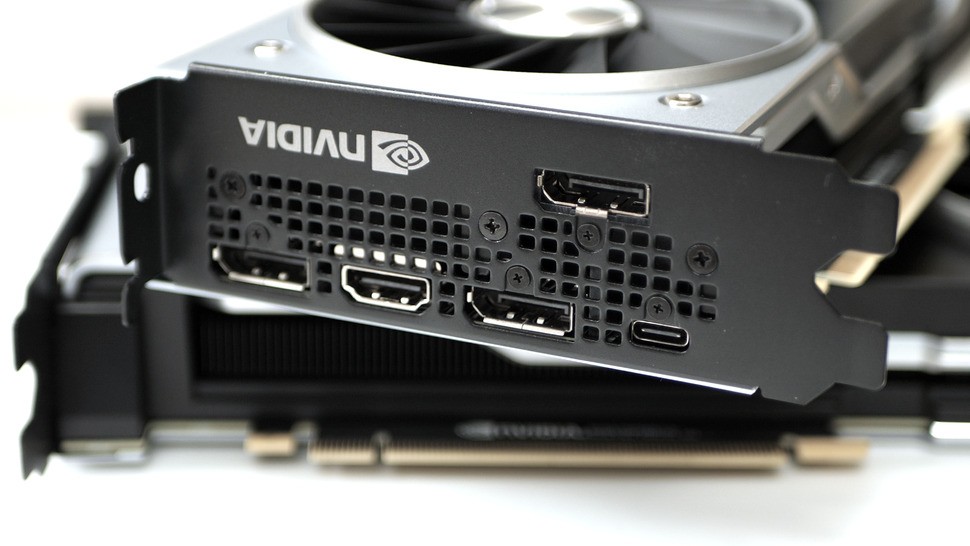 Despite the higher power usage, there are only cosmetic design changes between the RTX 2080 FE and the RTX 2080 Super FE cards. The new model has a reflective finish between its two axial fans and a green 'Super' wordmark plastered on, but it uses the same two-slot design as its predecessors and feels just as reassuringly solid in the hand. The port report also remains unchanged, with six-pin and eight-pin supplementary power connectors and an identical I/O quintet: three DisplayPort, one HDMI port and one USB-C VirtualLink port. We didn't expect changes here - except maybe the inclusion of a spoiler or some flame decals - but it's good to confirm everything is present and correct.