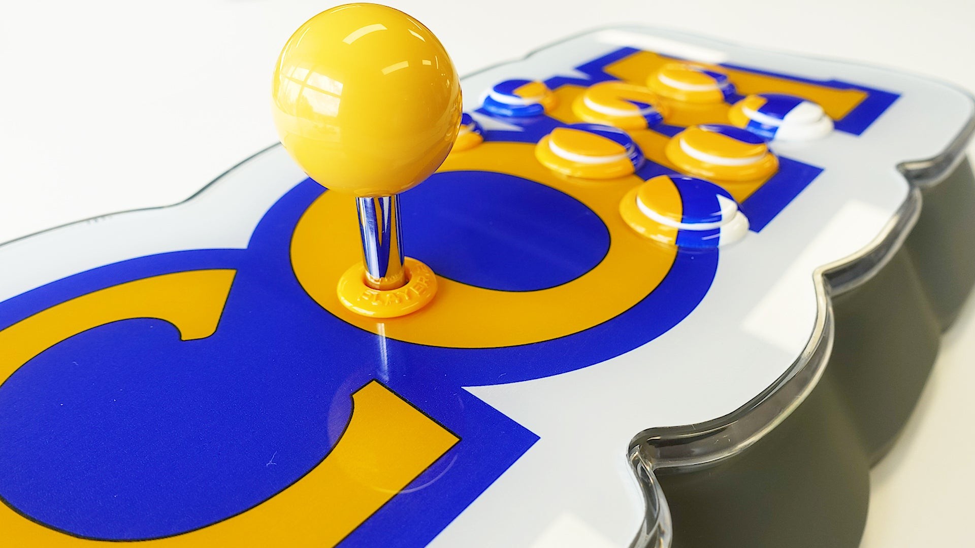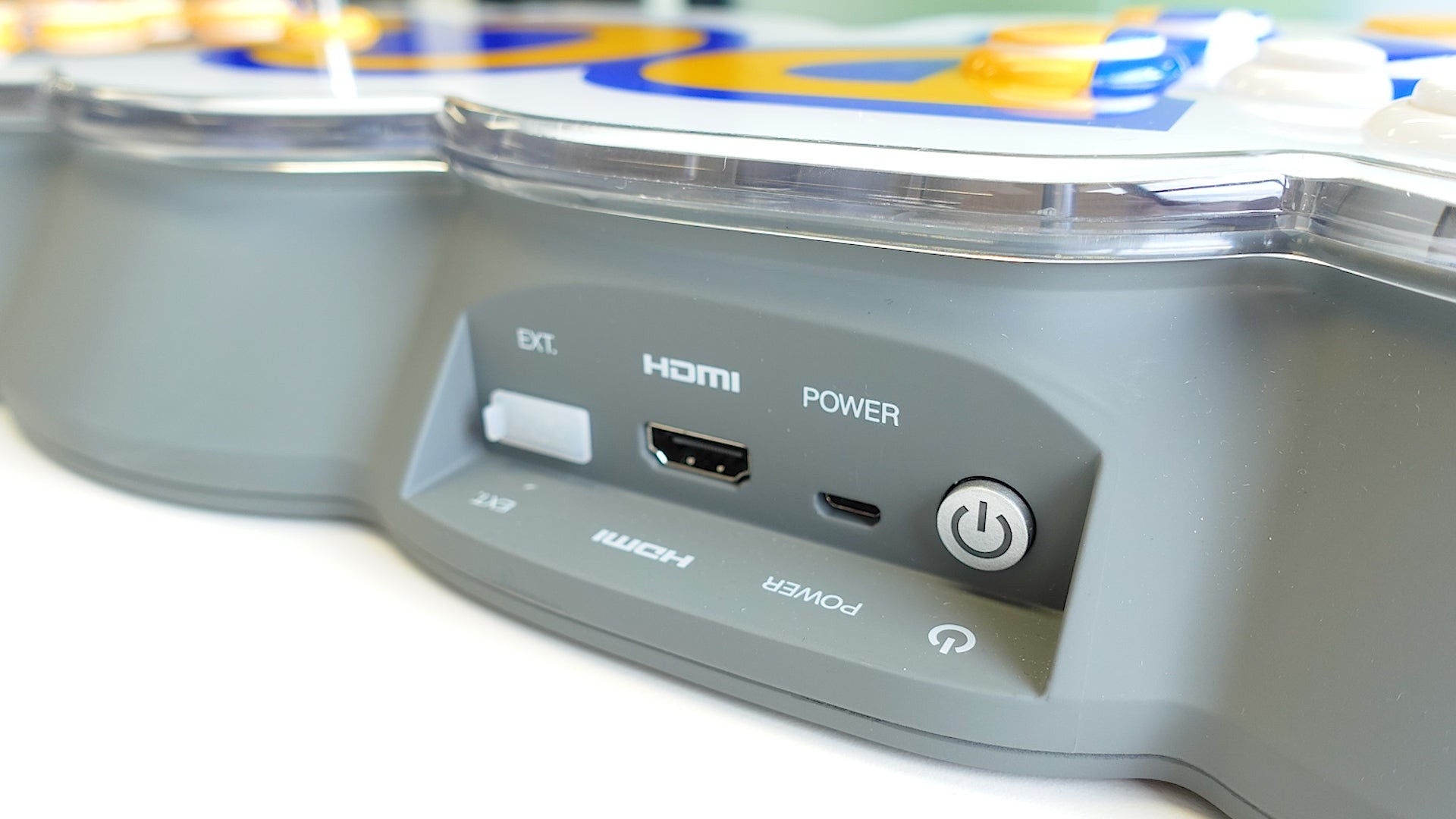 Regardless of the design, the controls on top are spot on. Anyone familiar with top-end Sanwa arcade parts will know the sense of a lightest touch triggering an input. It's precise, holds up to hard mashing and nothing jams. Equally, the spacing between the two player sides is essentially a match for a proper arcade unit (though I didn't have time to get the ruler out on this). One downside? To keep the front façade clean, and avoid labels, the start and 'insert credit' buttons near the top are tricky to tell apart - but at least the box includes stickers to help get you started.