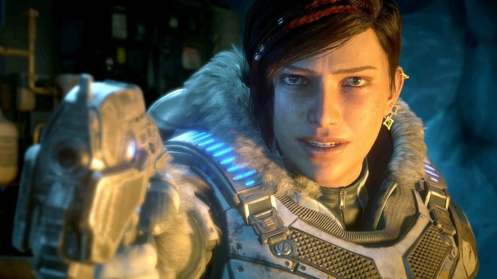 Naturally, the cast take centre-stage here and this is where we see our first major improvement over Gears 4. Each character has received a circa-50 per cent increase in overall polygon count - edges are now smoother with few visible edges present in any scene. In building the characters, artists reworked facial features and details to more accurately simulate the appearance of light playing off and shining through skin. The specularity of skin simulates the play of light off and through its surface and Gears 5 now support dual lobe specularity. By using dual specular roughness values, The Coalition creates a more natural skin effect, with a sheen that accurately replicates how light interacts with skin oil.
