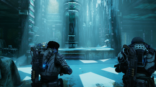 The Coalition: Gears of War 4 supported an insane setting for screen-space reflections and depth of field. On Gears 5, we've refactored depth of field to a higher quality and removed the insane setting in the process. We've retained insane screen-space reflections and added it to dynamic shadows and volumetric fog. Insane screen-space reflections are still glossy, but we've made some adjustments to make the setting scale better at 4K. Insane volumetric fog is one of our favourites which runs volume fog at such a high quality level it's indistinguishable from screen-space light shafts.