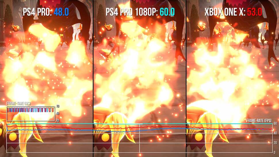 On all systems then, our recommendation would be to leave the game at its default performance setting. On the base machines, you essentially get frame-rates between 30fps to 60fps, depending on the load. It's not ideal, but it's definitely preferable to the borked stable mode. Curiously, while the standard PS4 and Xbox One have similar outputs here, it seems to be the Microsoft machine that has a small advantage in testing like-for-like scenes. Also surprising is the fact that the PS4 Pro actually runs slower than both of them, and noticeably so. At the top of the pile sits Xbox One X, handing in its native 1440p presentation mostly in 50-60fps territory.