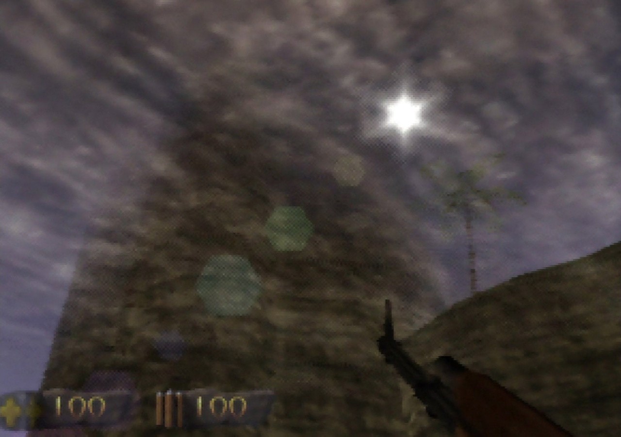 Turok pushed hard in other technological directions too, and water rendering is a great example of this. The developers combine a smoothly animated surface texture with transparency and in some cases, an undulating surface mesh. So as you swim, gentle waves are visible across the surface - quite an upgrade from what the likes of Quake were offering at the time. Sky rendering was another standout feature, with clouds that use multiple scrolling transparent layers. And how about lens flare? That's in Turok too. The sun is drawn to the Z buffer and that data is pulled from the GPU where the system can test how occluded the sun is. This data is then used to determine the transparency value for the lens flares.